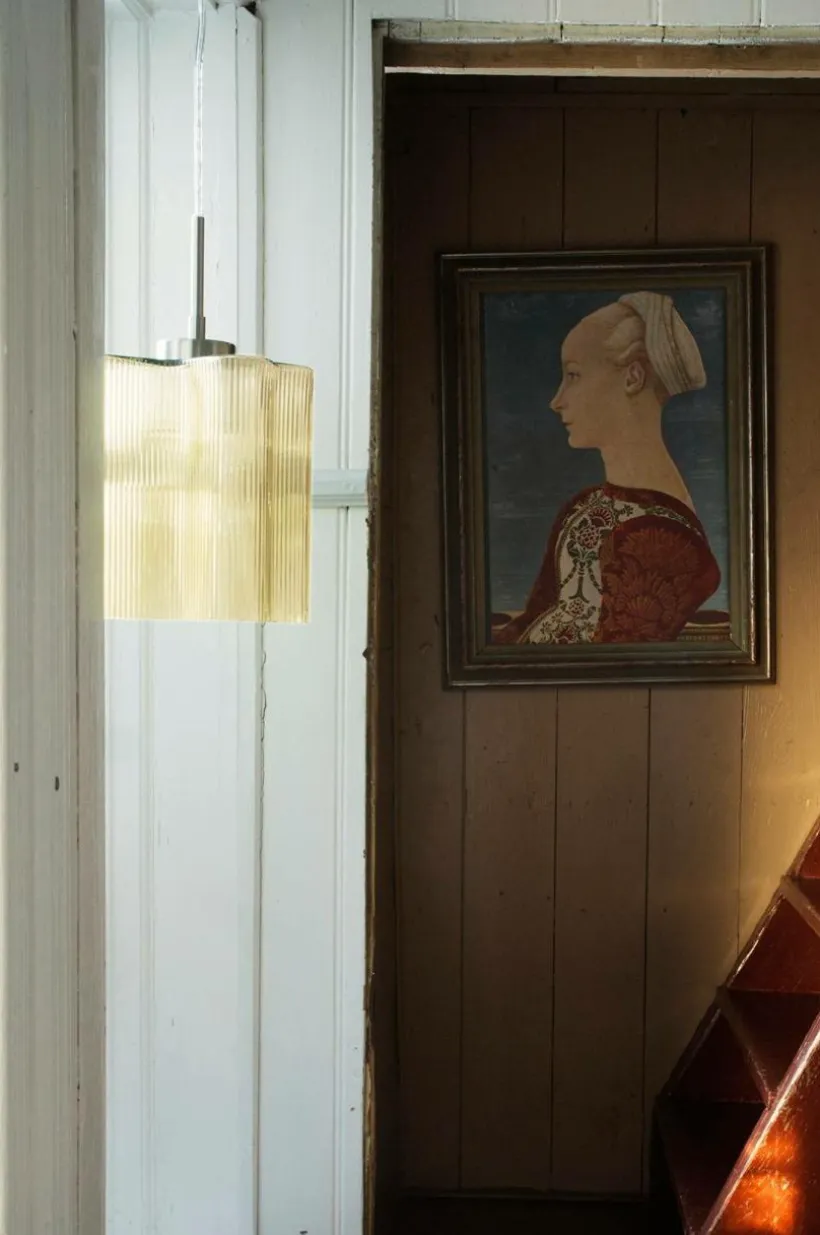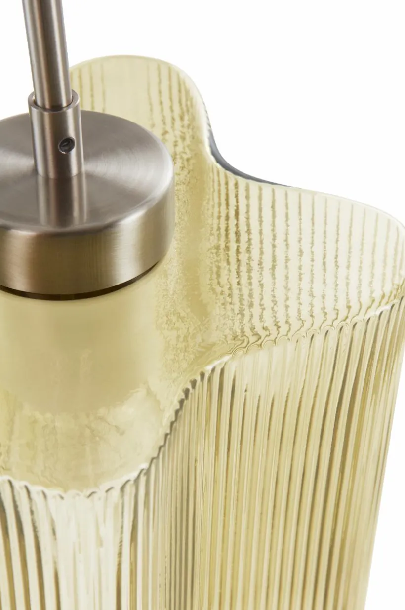 Taklampa av glas och formen är som en blomma, när naturen får inspirera blir det fint. Lampan har nedåtriktat ljus kombinerat med belysning genom glaset. Glaset har strukturränder som dämpar ljuset och ger vackert sken. EUROPA är mycket dekorativ över ett matbord, eller varför inte två eller tre på rad om matbordet är lite längre? Lampans fäste är av metall och sladden är transparent.