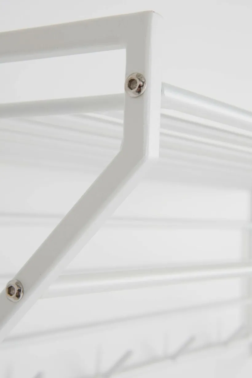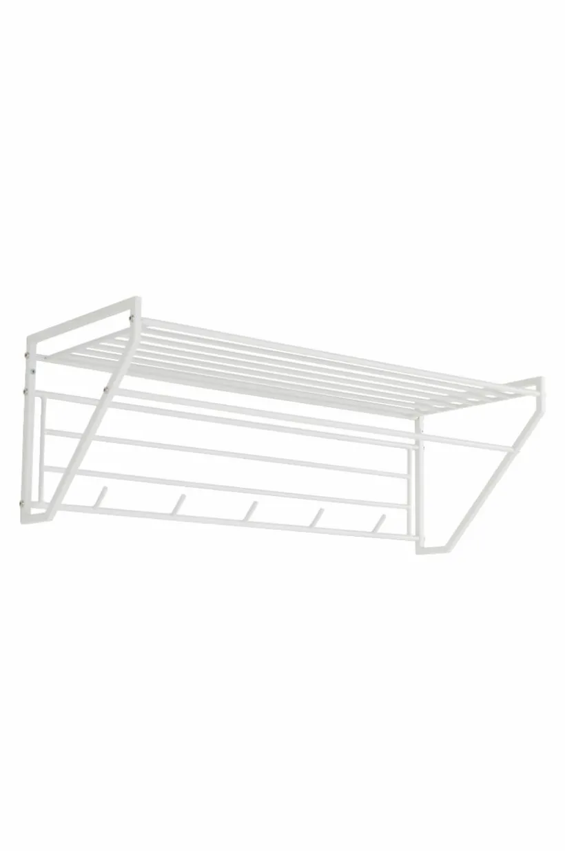Hatthylla i stål med matt, pulverlackerad yta. EVERLY har gavlar av fyrkantsprofil och hyllan består av runda ribbor, en klassisk modell som passar in överallt och håller länge. I framkant finns en stång för galgar, över stången kan du också hänga halsdukar och sjalar. Väggfäste ingår, skruvar medföljer ej. Viss montering krävs. Monteringsanvisning medföljer. Galgar medföljer ej.