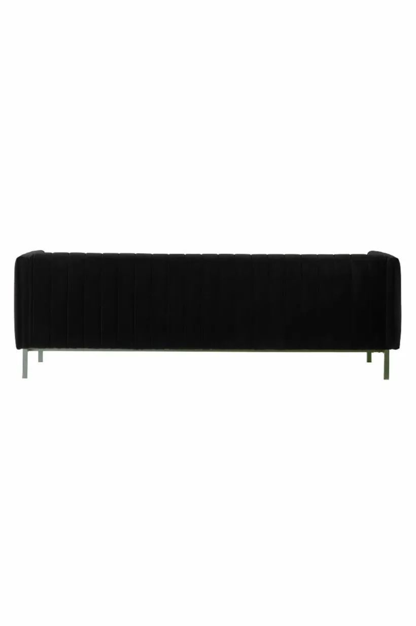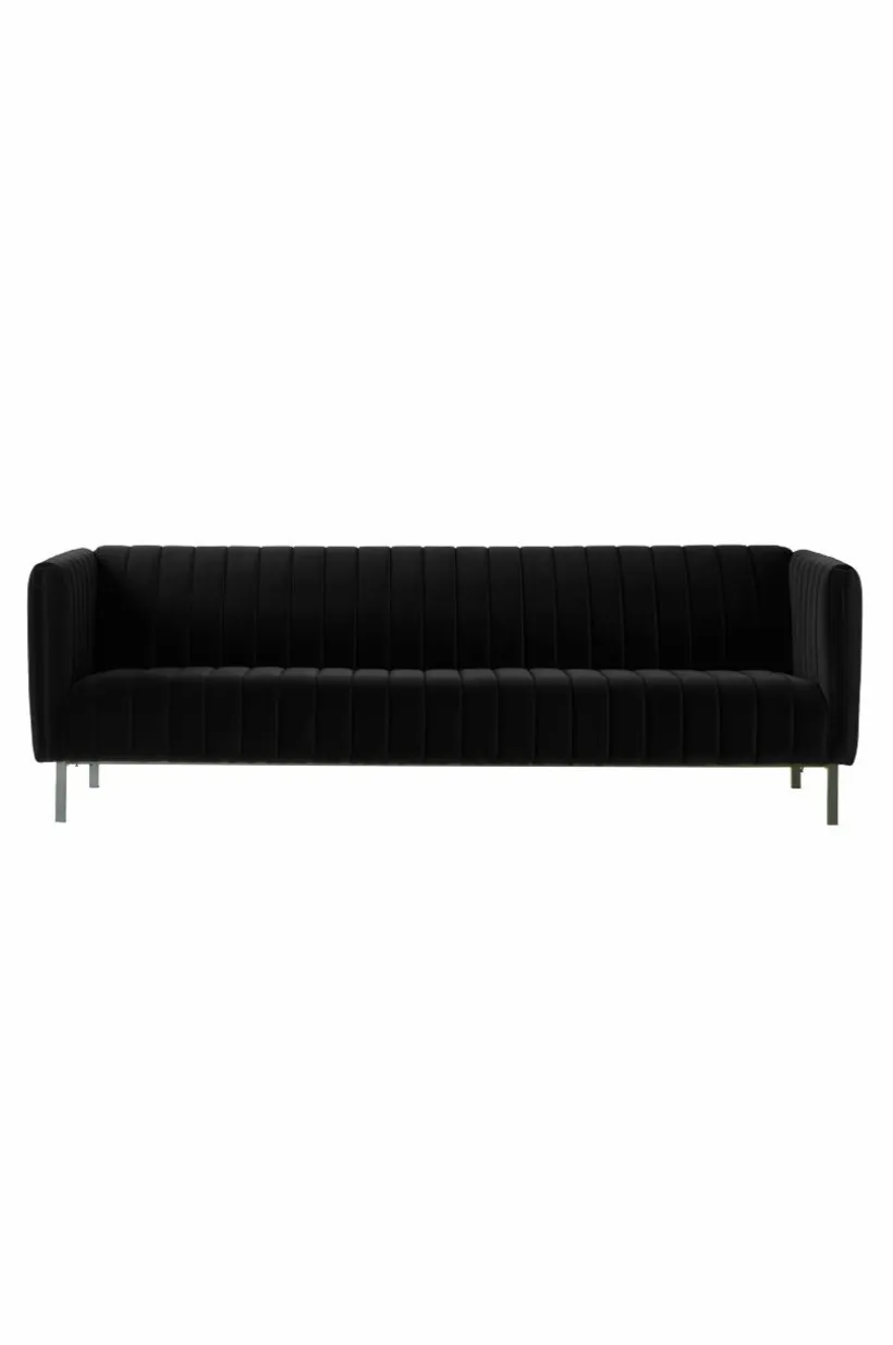 FAYETTE 3-sits soffa är en bekväm sammetssoffa med retrokänsla som uppstår i kombinationen av sammet och den quiltade randningen på ryggstöd och dyna. Den fasta stoppningen ger bekväm sittkomfort. Soffan får en smäcker känsla med de nätta, svarta metallbenen. FAYETTE 3-sits soffa har en stabil stomme av furuträ och plywood med god sittkomfort tack vare sin fantastiska uppbyggnad av kallskum, zickzackfjädring, resårband samt den sköna polyesterstoppningen.