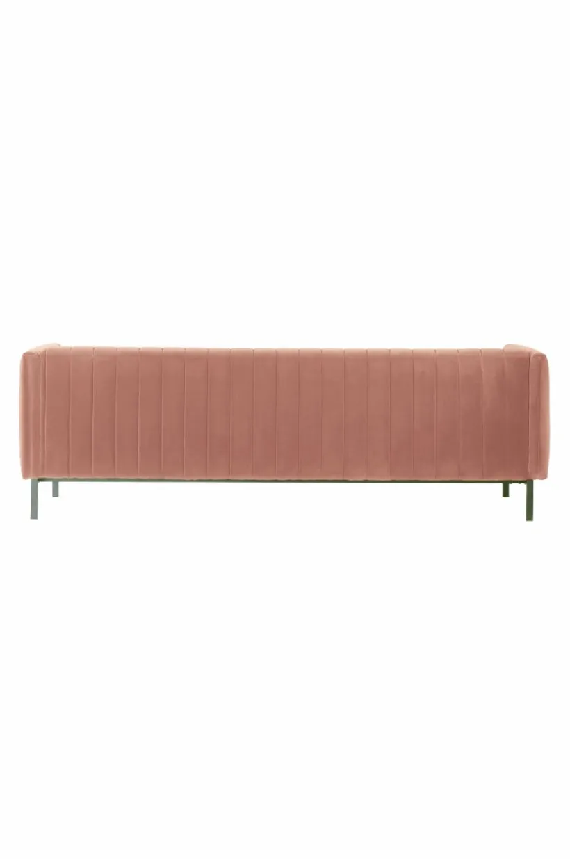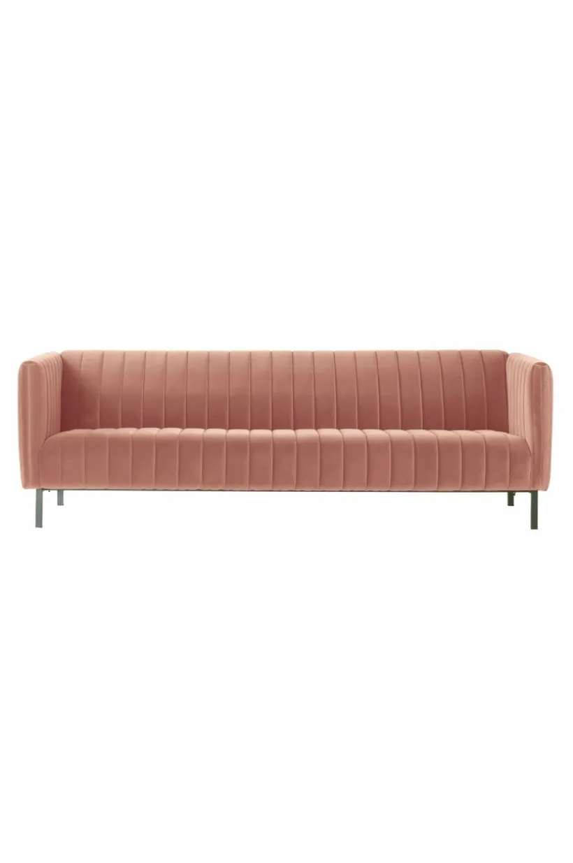 FAYETTE 3-sits soffa är en bekväm sammetssoffa med retrokänsla som uppstår i kombinationen av sammet och den quiltade randningen på ryggstöd och dyna. Den fasta stoppningen ger bekväm sittkomfort. Soffan får en smäcker känsla med de nätta, svarta metallbenen. FAYETTE 3-sits soffa har en stabil stomme av furuträ och plywood med god sittkomfort tack vare sin fantastiska uppbyggnad av kallskum, zickzackfjädring, resårband samt den sköna polyesterstoppningen.