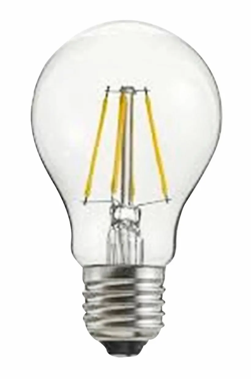 LED-lampa i glas. Färgtemperaturen är 2700 kelvin. Ljusflödet är 360 lumen. Effekt: 4 w. Medellivslängd: 10000 timmar. Watt = energiförbrukning. Lumen = hur mycket ljus som avges.