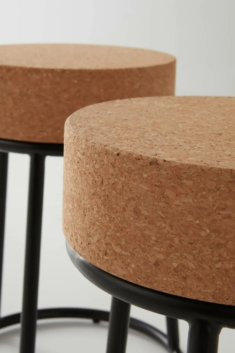 2-pack pallar i snyg och speciell modell. Pallarna har sits av kork, med ett stabilt och snyggt underrede av pulverlackerad stål. Viss montering krävs. Monteringsanvisning medföljer.