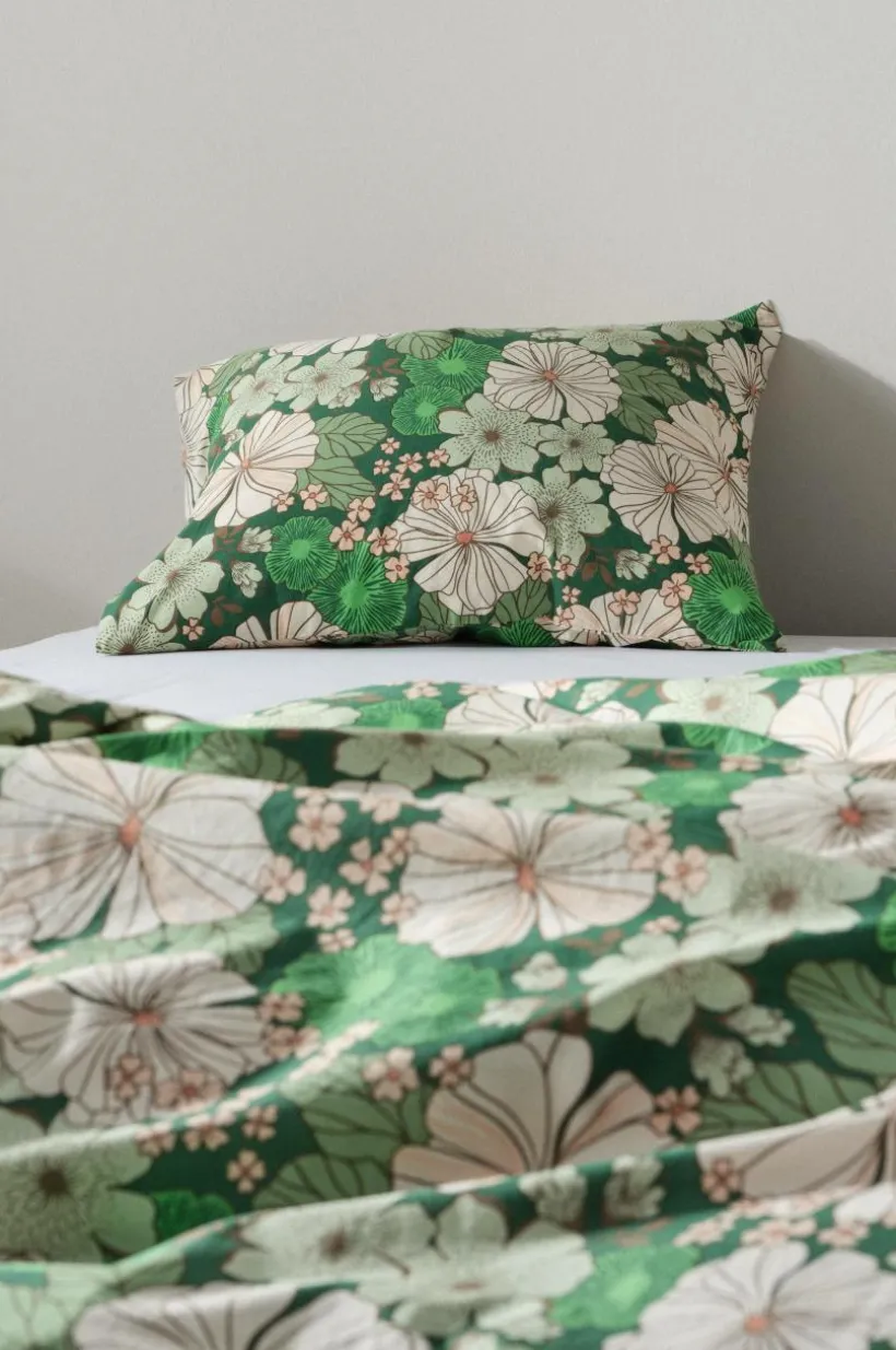 FIORI örngott, med mönster designat av Maria Carlberg, ger en touch av retro elegans till ditt sovrum med sitt charmiga blommönster. Örngotten är tillverkade av bomull och enzymtvättade för extra mjukhet, och de utlovar komfort i tidlös design. Komplettera din inredning med matchande produkter från FIORI-familjen.