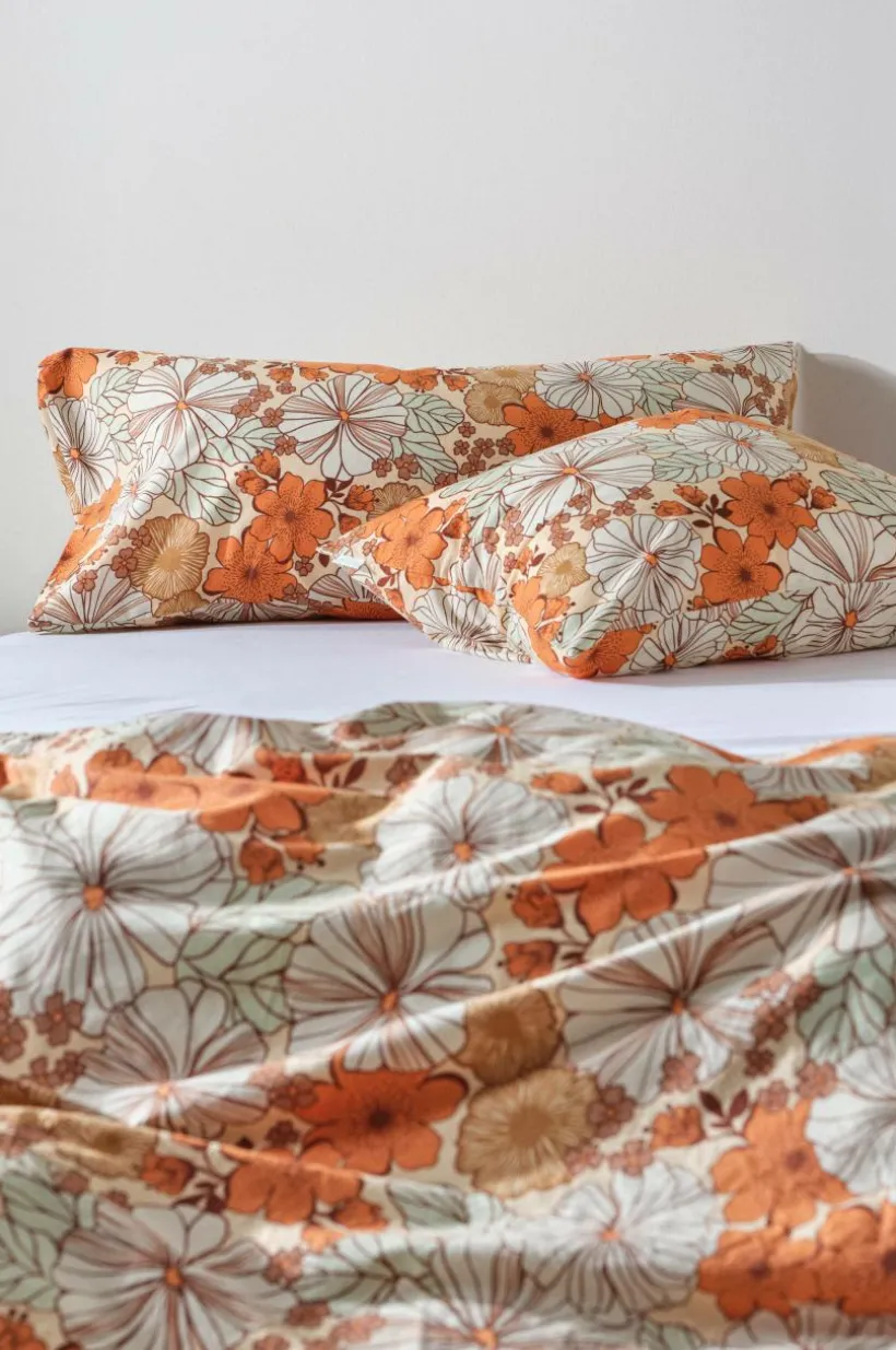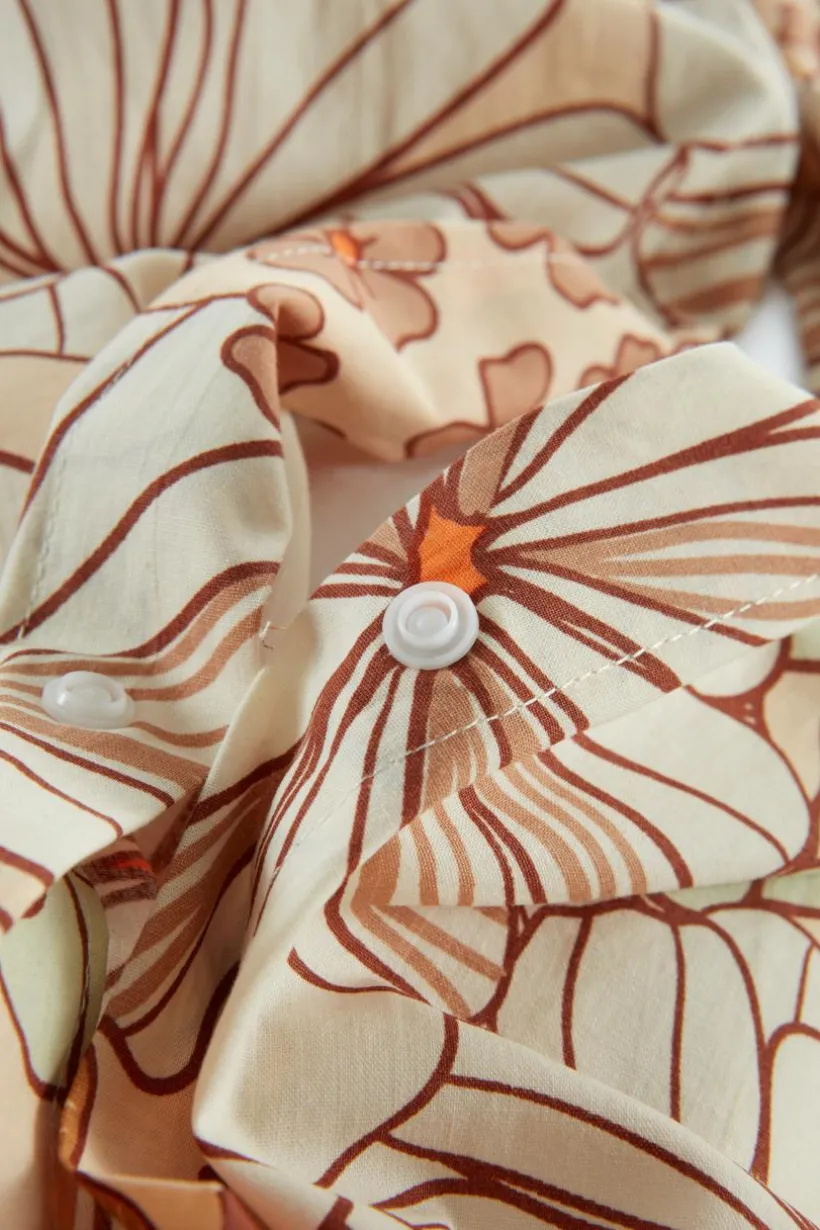 FIORI bäddset lyfter ditt sovrum med sitt eleganta retroblommönster designat av Maria Carlberg. Setet är tillverkat i mjuk fintrådig, tätvävd bomull och består av ett extra brett påslakan med praktiska handtag och tryckknappar samt två örngott med en klassisk flik. En del av FIORI-familjen, hitta matchande föremål för att komplettera looken.
