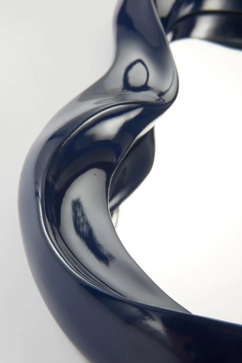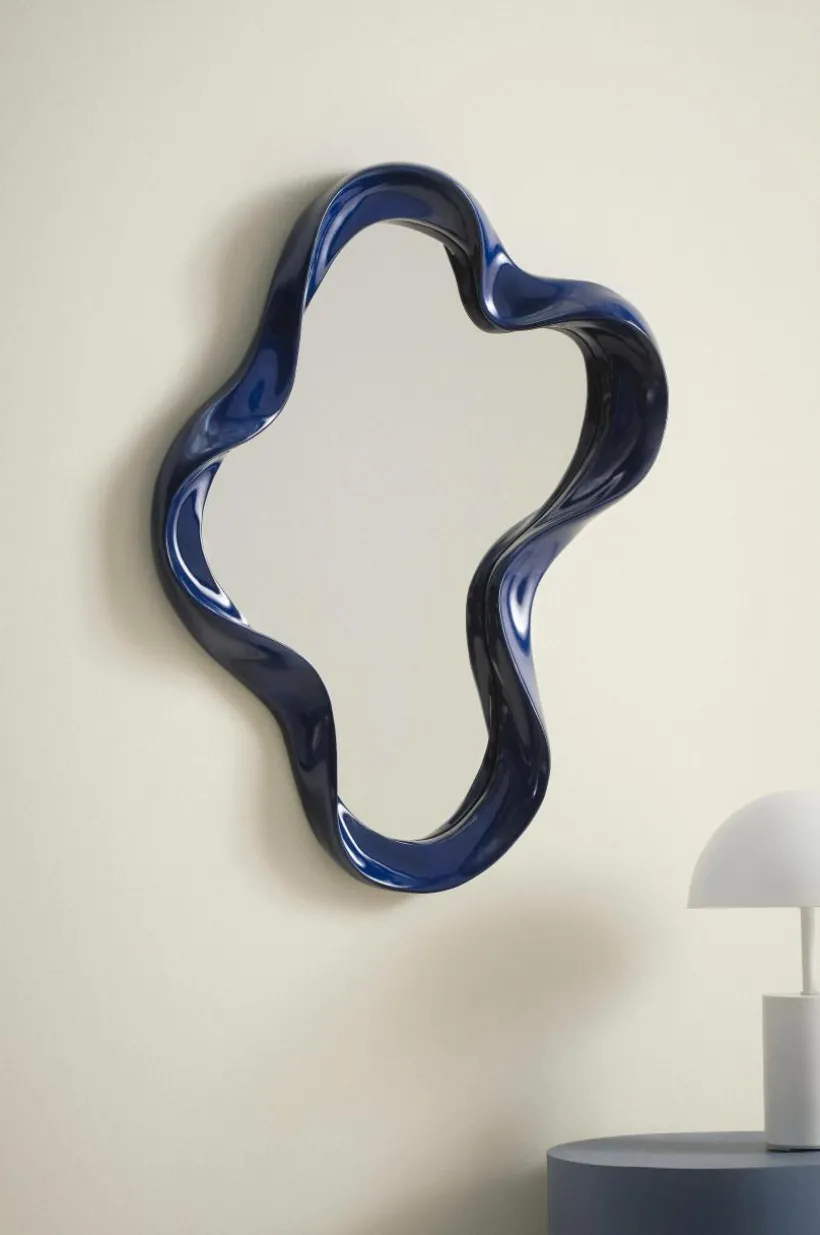 Handgjord spegel i oregelbunden form med flytande känsla och färgstark ram, som ger spegeln karaktär. Spegeln hängs på väggen och har hål för upphängning på ett sätt på baksidan. Det fina hantverket gör varje spegel unik.