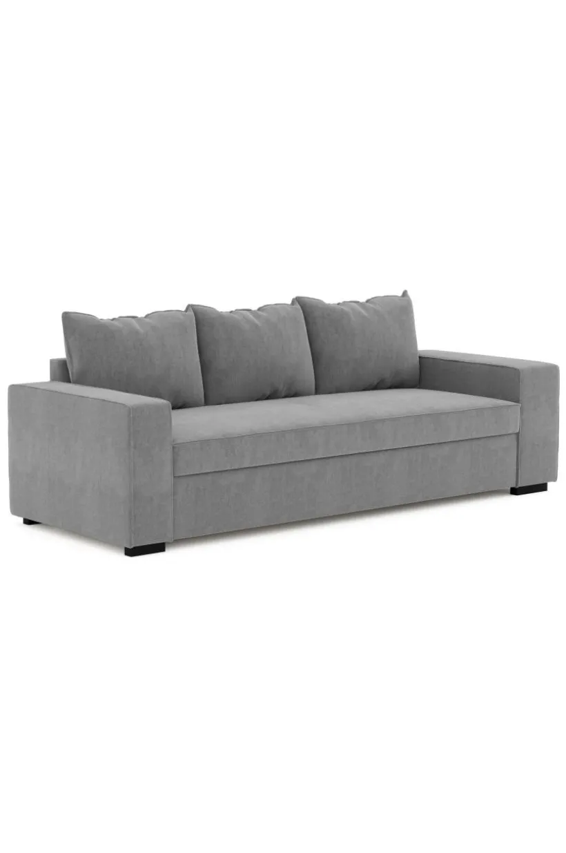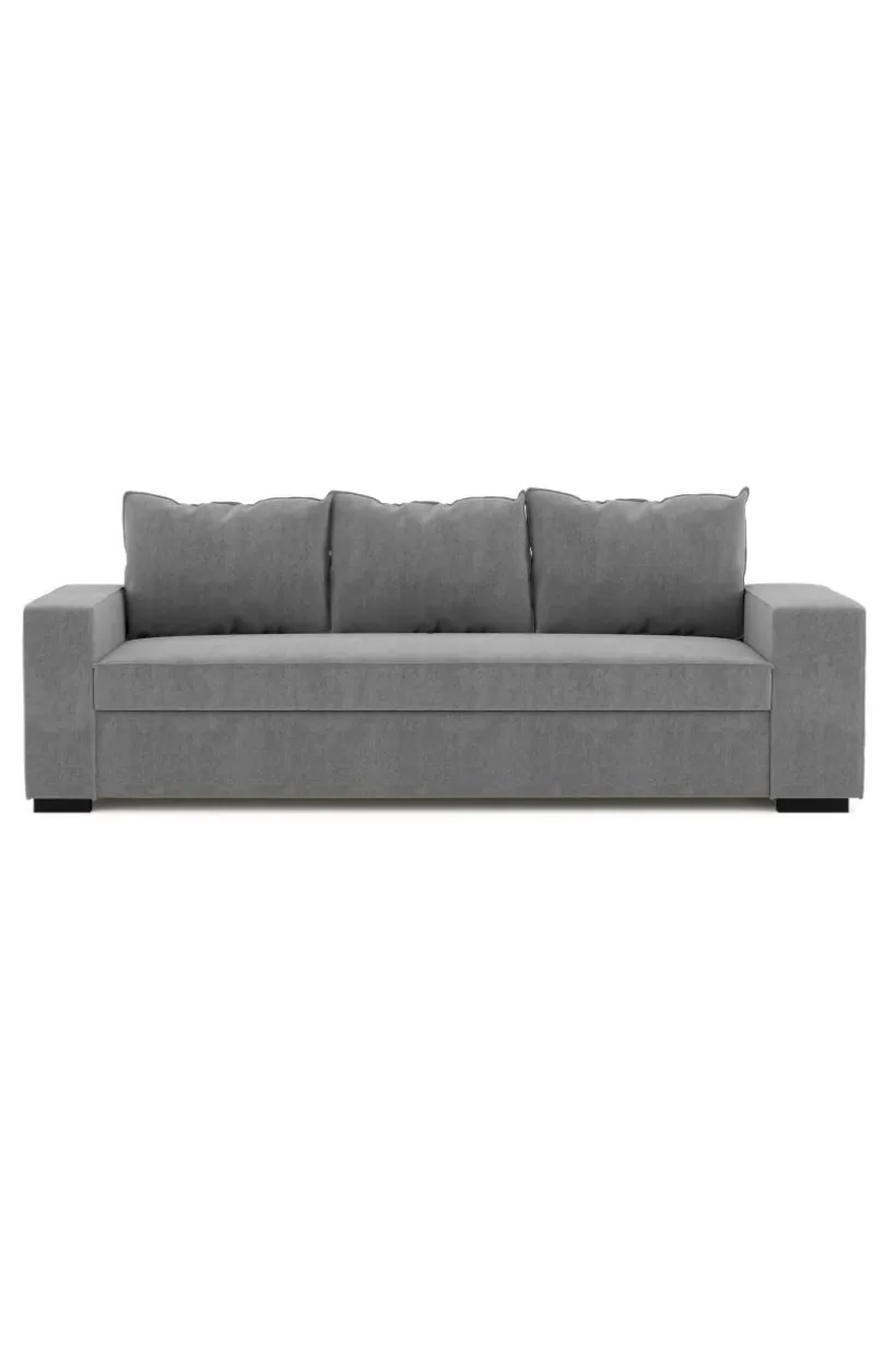 Soffans stomme är av FSC-certifierat trä, det gäller både furu, plywood och MDF. Sicksackfjädring tillsammans med kallskum ger bekväm sitt- och liggkomfort. De mjuka ryggkuddarna kan du plocka bort vid bäddning och även de runda sidokuddarna. Dessa ger bekväm vila för armarna samtidigt som de är en snygg detalj i soffan. Soffans klädsel är mjuk, snygg och tålig. Det melerade mönstret gör att småfläckar syns mindre. Tyget har Martindale på 70000 vilket innebär att det är mycket slitstarkt. Klädseln är ej avtagbar. Viss montering krävs. Monteringsanvisning medföljer.