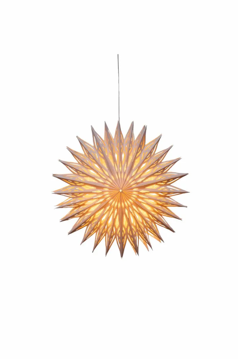 Ljusstjärna i pappershantverk vackert formad som en blomma. Inklusive ett praktiskt 5 meter långt sladdstativ för enkel placering. Idealisk för advents- och juldekorationer, perfekt att hänga i fönster eller mot väggar, vilket ger värme och charm till alla miljöer.