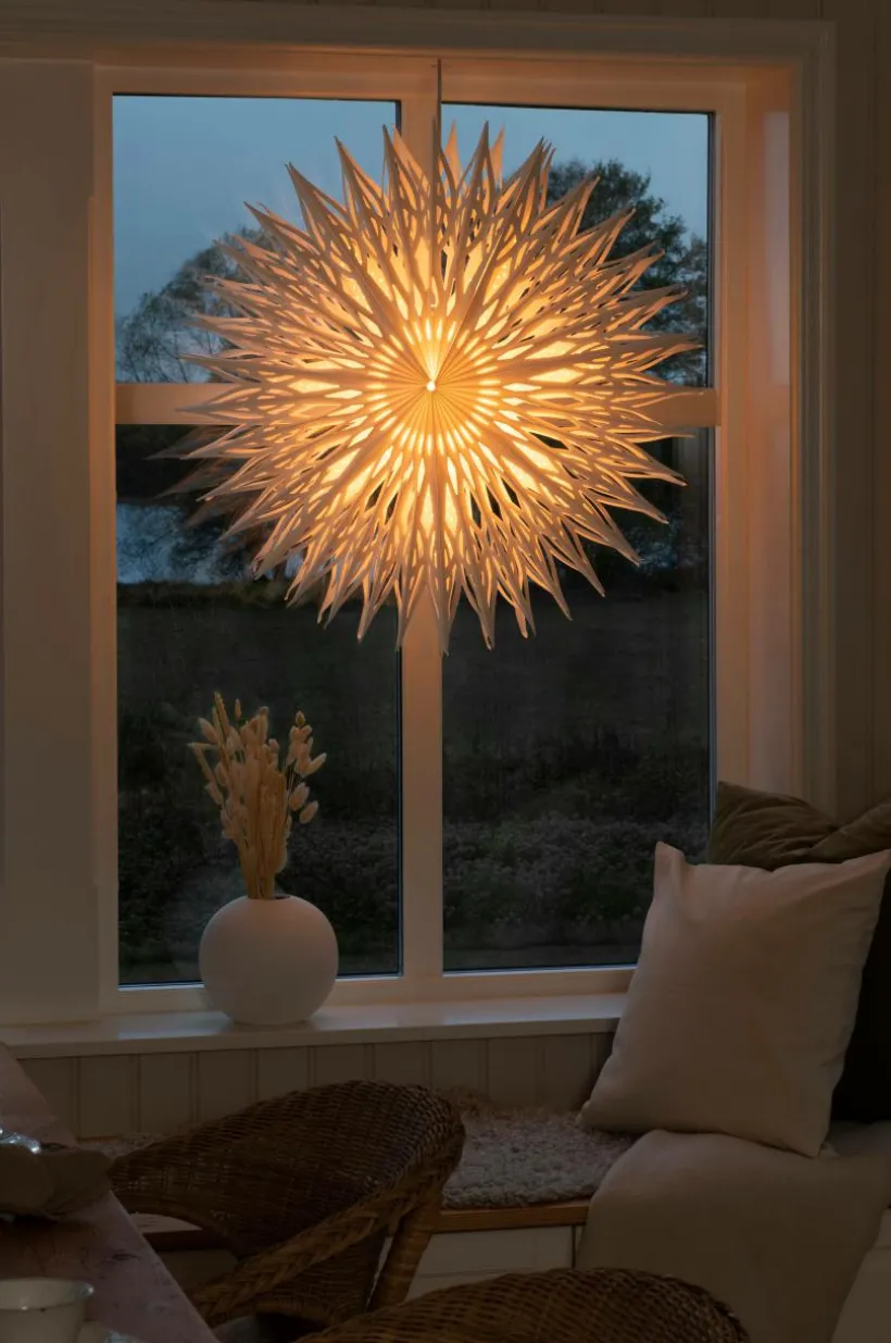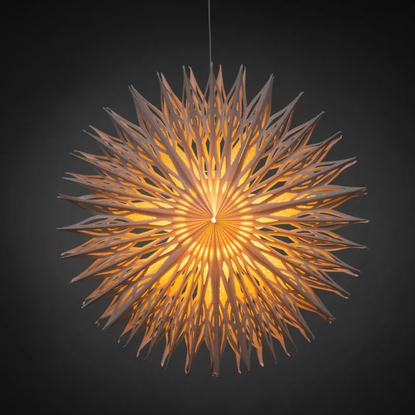 Strålande pappersstjärna formad som en blomma skapar ett varmt, inbjudande sken. Perfekt för advents- och juldekorationer och inkluderar ett sladdställ med anslutningskabel. Perfekt att hänga i fönster eller på väggar för att förhöja julstämningen.