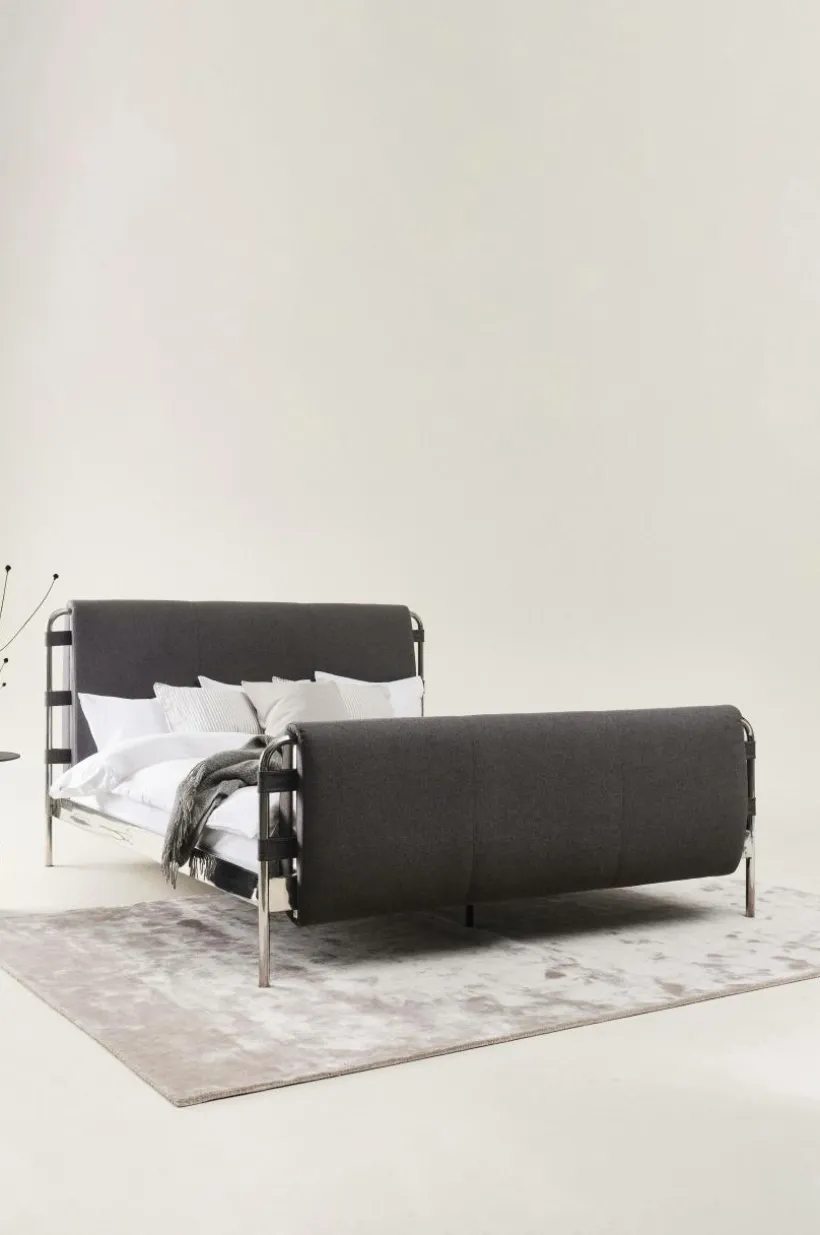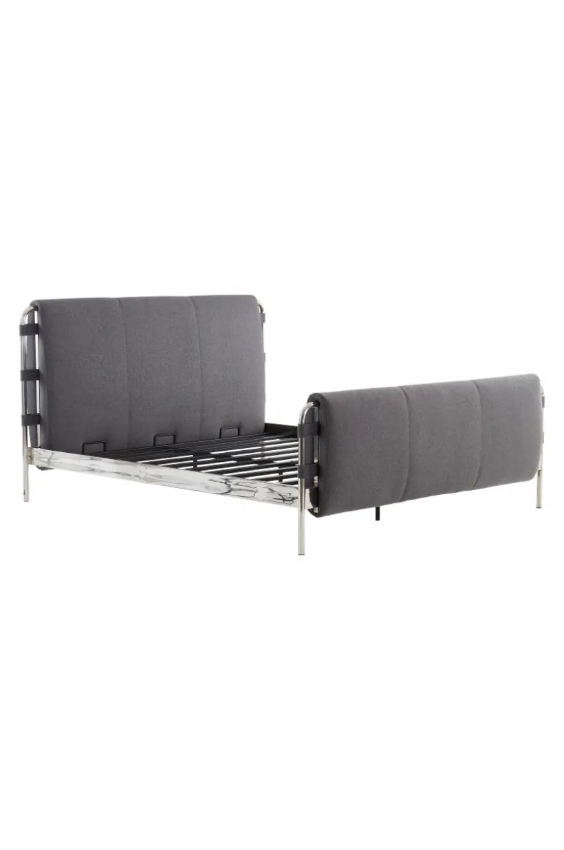 FLOWS är en maffig, generös och bekväm sängram. Stommen är helt i lackerad stål vilket är speciellt för FLOWS. Både huvudgavel och fotgavel har tjock skumvaddering som klätts med ett stilrent och neutralt polyestertyg. Den pampiga möbeln är bekväm att sitta och läsa i på kvällskvisten eller njuta av morgonkaffet lutad mot sänggaveln. Sängramen har ribbotten av pulverlackerad stål. Komplettera med den madrass som passar dina önskemål. Madrass/resårbotten ingår ej. Viss montering krävs. Monteringsanvisning medföljer.