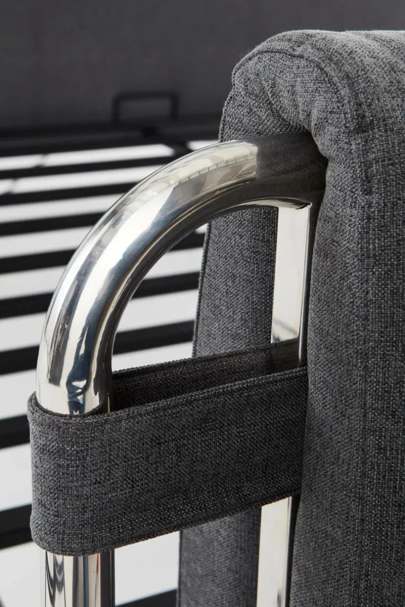 Material: Stål. Tyg: 100% polyester. Stoppning: Skum.
