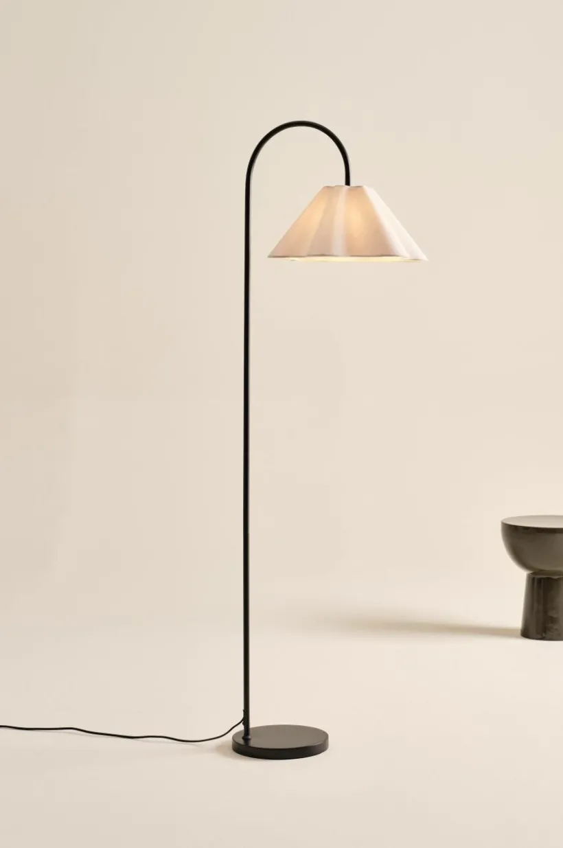Golvlampan FRANCIS kombinerar mjuka linjer med stram design. Lampskärmen i tyg sprider ett mjukt, varmt ljus och skapar en inbjudande atmosfär i vardagsrummet eller sovrummet. FRANCES är lätt att passa in. Textilkabeln med en på/av-strömbrytare garanterar enkel användning.