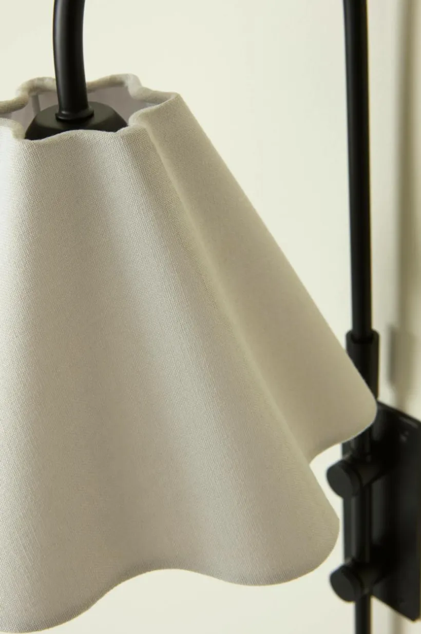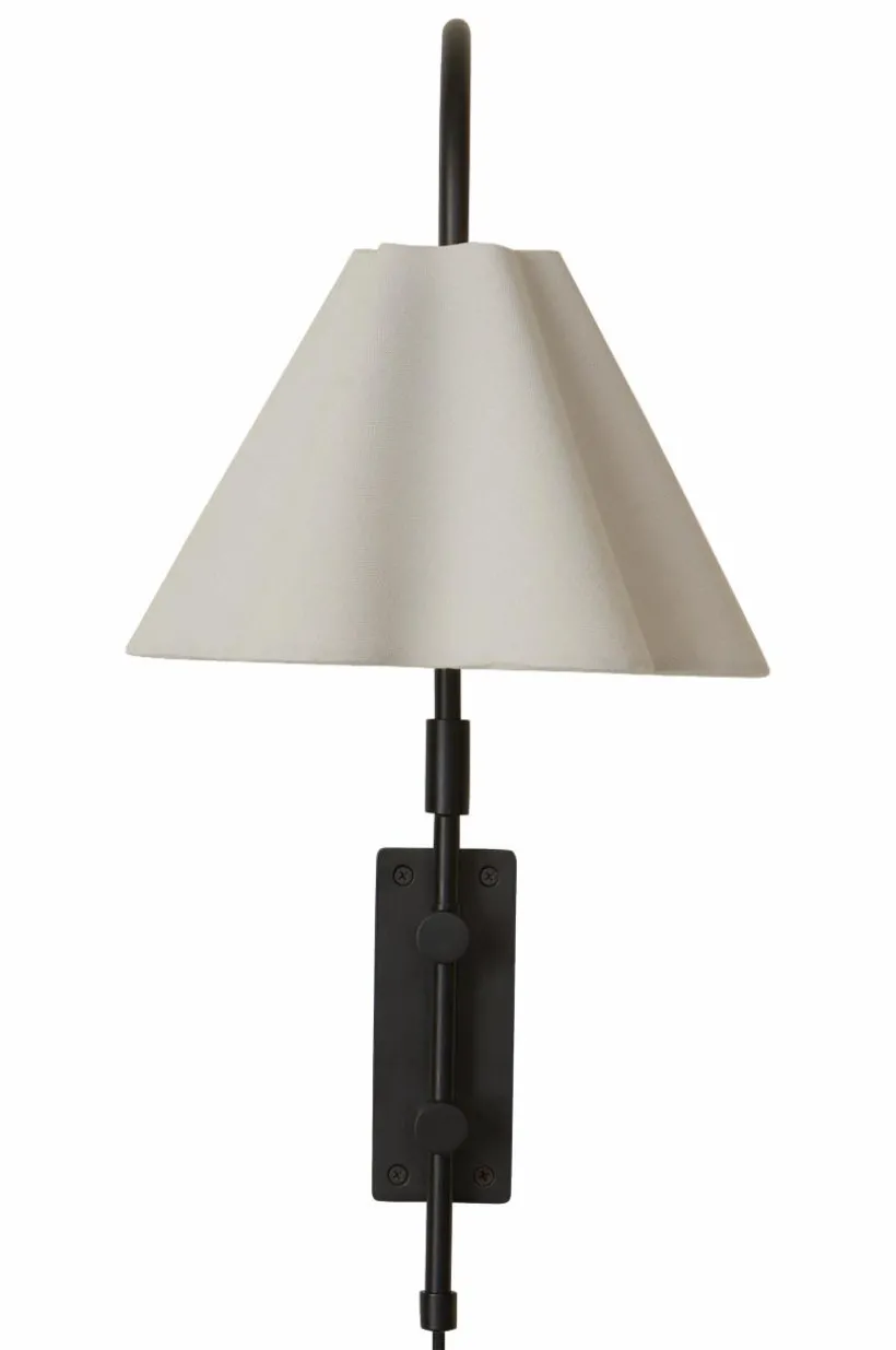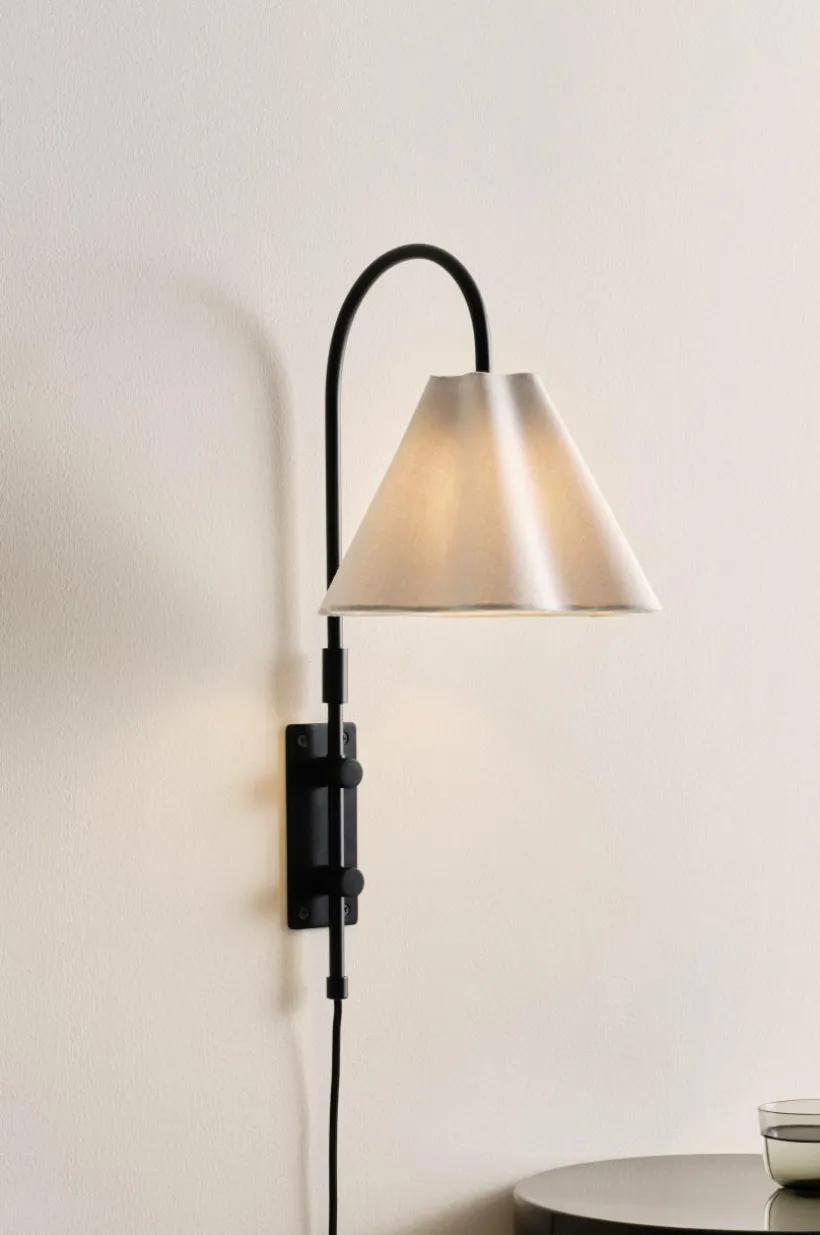 Vägglampan FRANCIS har en lampskärm i tyg som sprider ett varmt ljus och skapar en inbjudande atmosfär. Designen kombinerar mjuka linjer med en strikt struktur och passar enkelt in i vardagsrummet, hallen, köket eller sovrummet. Textilkabeln ger enkel användning.