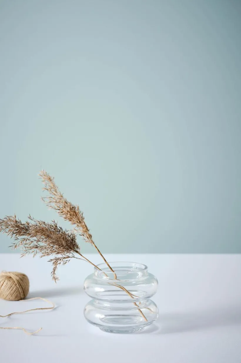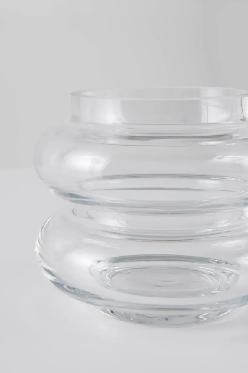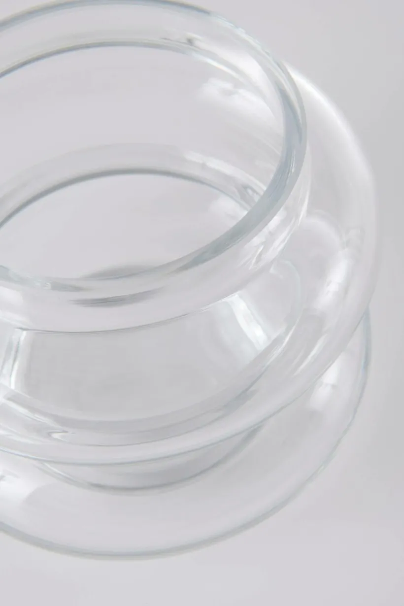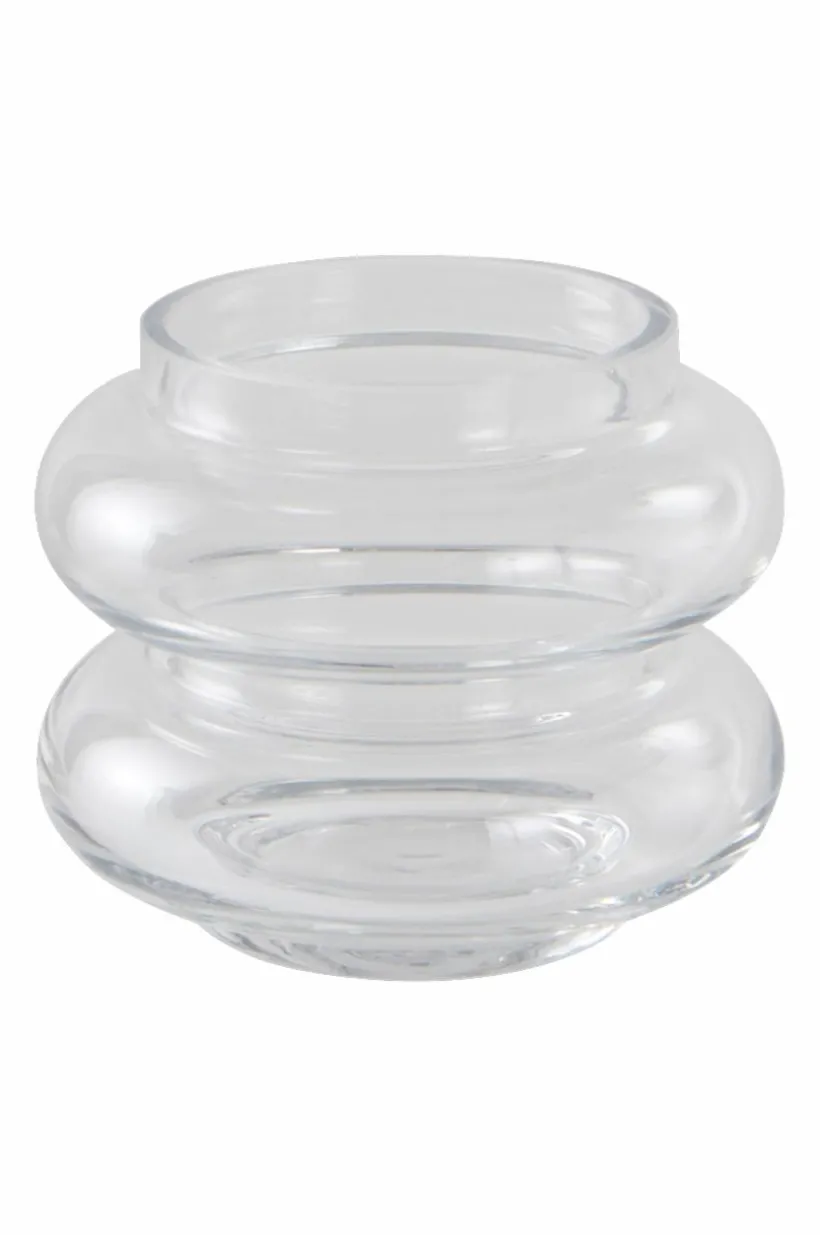 Vackert formad dekorationsvas av glas. En stilren handgjord vas som blir en fin detalj i ditt hem.