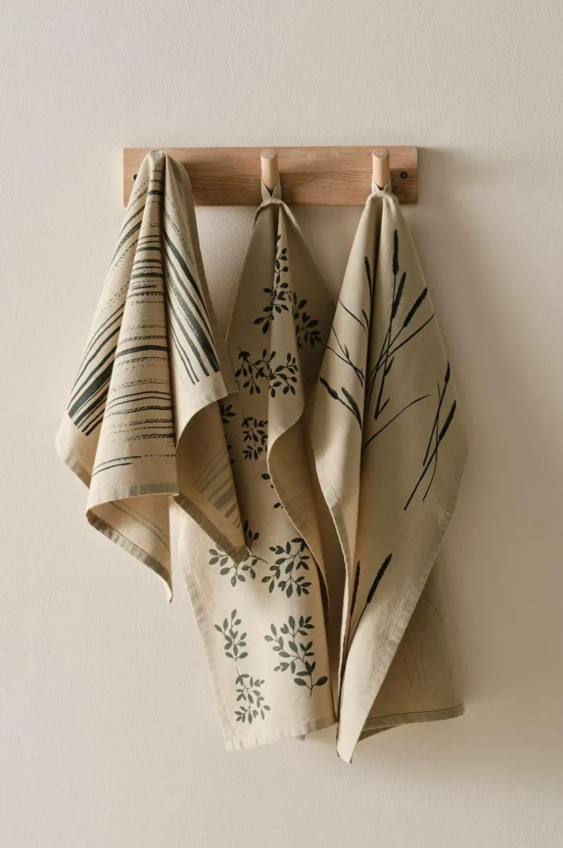 FRANKLYN 3-pack kökshanddukar har tre olika och fina motiv. Tillverkade av mjuk, tvättad bomull med god uppsugningsförmåga för daglig användning. De tre handdukarna är användbara för att torka disk eller linda in nybakat bröd i dem.