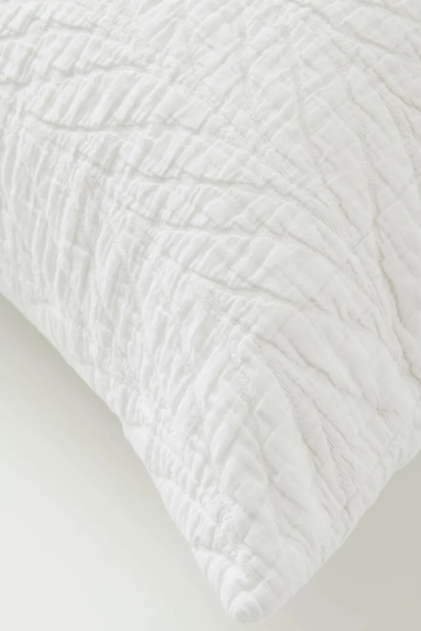1-pack kuddfodral av mjuk bomull med ett dekorativt quiltat bladmönster. Dragkedja på baksidan.