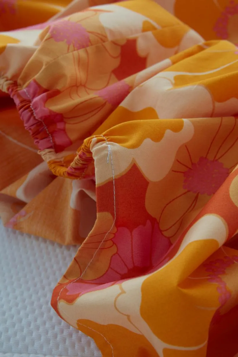 FRIDA påslakan ger barnrummet ett stänk av retrocharm. Det är tillverkat av mjuk ekologisk bomullspercale och prytt med lekfulla tryck och passar perfekt ihop med den matchande vuxenversionen för en sammanhållen familjestil. Komfort för de minsta möter tidlös design.