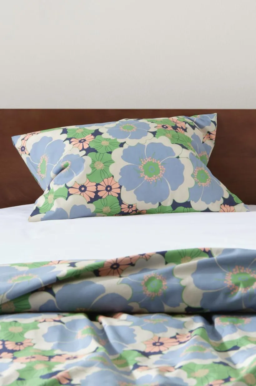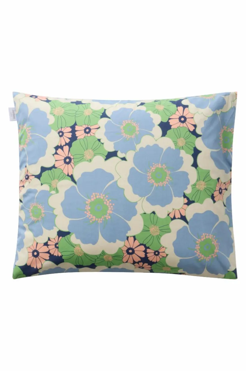 FRIDA örngott ger en touch av retro elegans till ditt sovrum. Mönstret är designat av Maria Carlberg. Dessa örngott har ett reaktivt tryckt retromönster på ekologisk bomullspercale, vilket ger mjukhet och kvalitet. Dyk ner i komfort och stil med FRIDA.