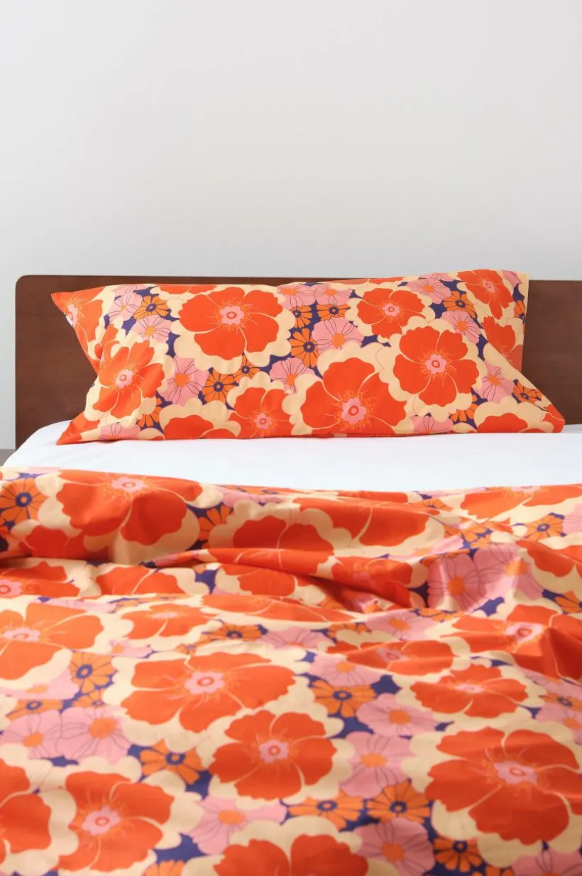 FRIDA örngott ger en touch av retro elegans till ditt sovrum. Mönstret är designat av Maria Carlberg. Dessa örngott har ett reaktivt tryckt retromönster på ekologisk bomullspercale, vilket ger mjukhet och kvalitet. Dyk ner i komfort och stil med FRIDA.