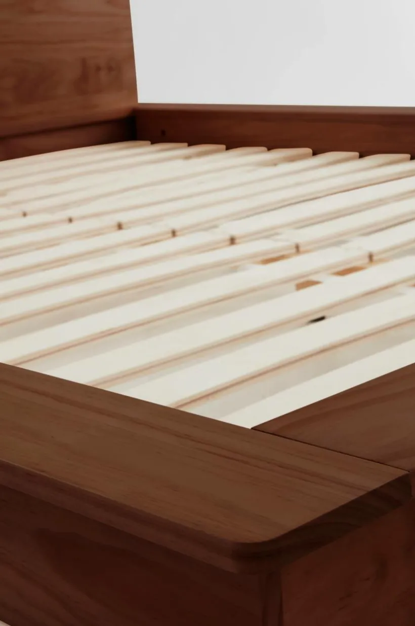 Sängram i stilren modell av FSC-certifierad furu. Sängramen som är i massivt trä har en bred träsarg längs tre sidor och upplevs som svävande. Den har låg huvudgavel med bekväm lutning. Stilen är en skön kombination av det nordiska och japanska. Ytan är lätt laserad. Sängramen har ribbotten av furu och du kompletterar med madrasser eller resårmadrasser beroende på vilket du föredrar. Madrass/resårmadrass ingår ej. Viss montering krävs. Monteringsanvisning medföljer.