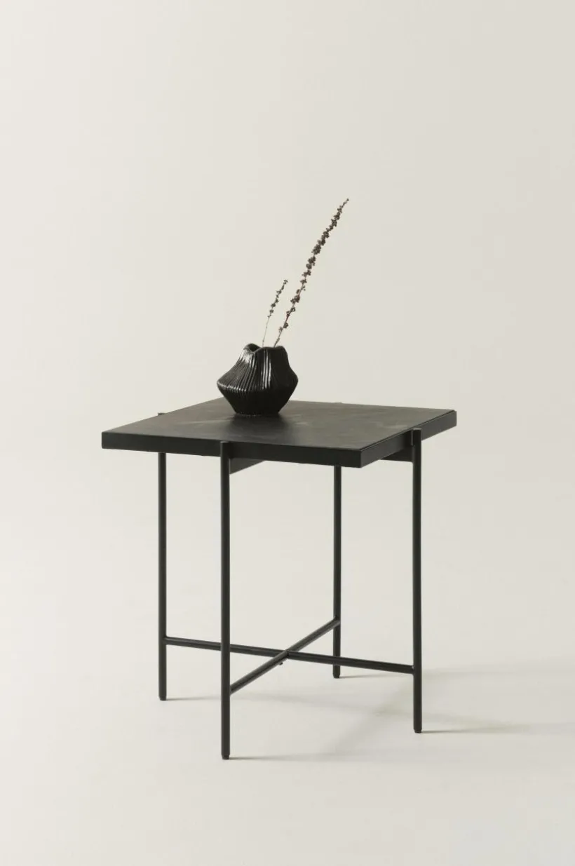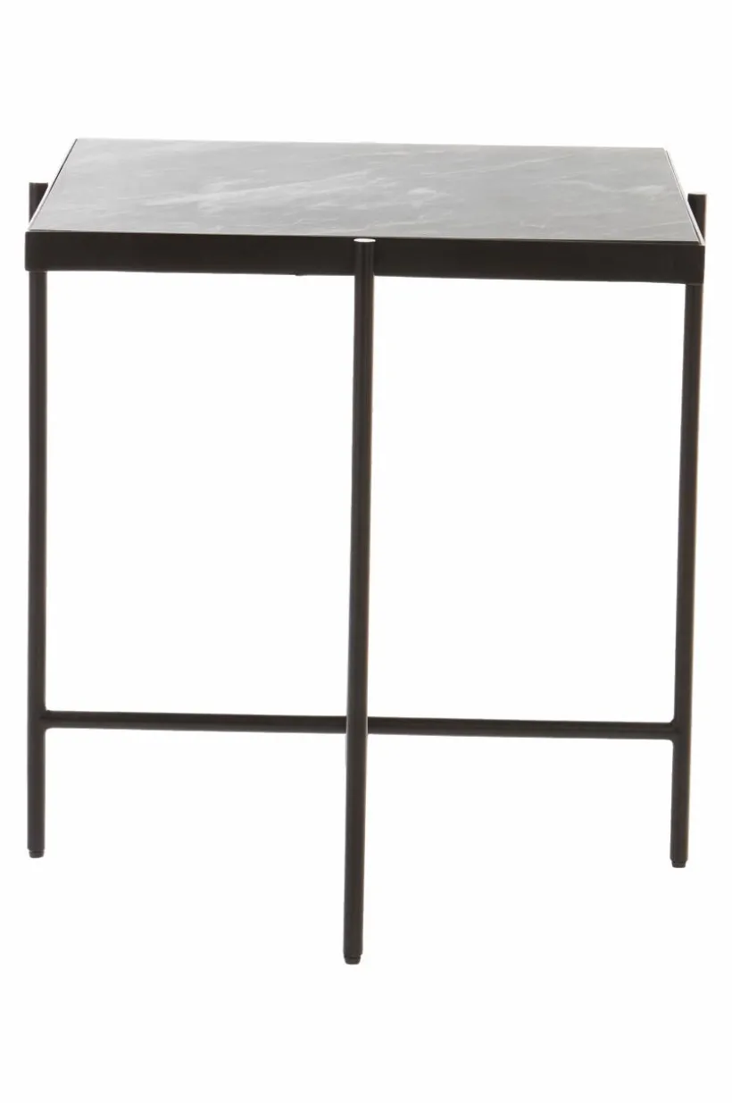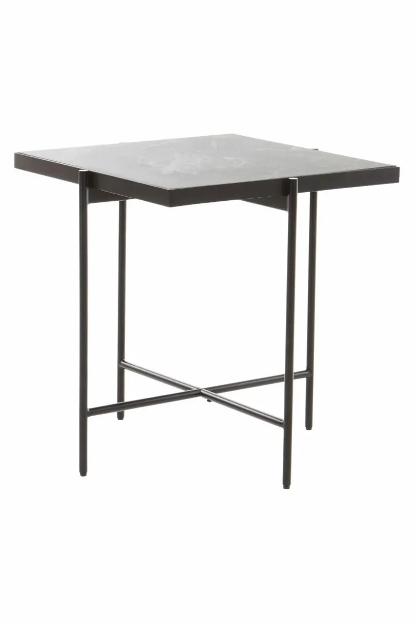 Kvadratiskt sidobord med vacker bordsskiva av mörk marmor och underrede av MDF. De dekorativa benen är av järn. GALATINA är ett klassiskt sidobord med tidlös elegans. Marmor är en natursten och mönstret varierar alltid lite beroende på bergartens sammansättning, vilket gör varje möbel unik. Viss montering krävs. Monteringsanvisning medföljer.