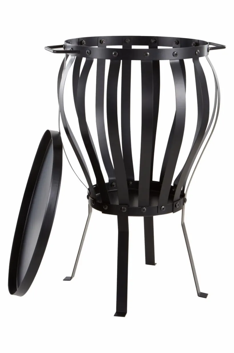 Eldkorg av stål med pulverlackerad yta. Eldkorgen är en bärbar eldstad som du kan flytta runt i din trädgård, där du vill ha en mysig brasa att värma dig vid eller istället för marschaller utanför huset när gästerna kommer. Du kan också grillla till exempel korv med långa grillspett när elden övergått till glöd. Grillkorgen är för utomhusbruk och har en tallrik att stå på som samlar upp viss aska. Var beredd på att det kan slå gnistor och blåsa omkring lite aska, elda inte nära något som kan börja brinna. Viss montering krävs.
