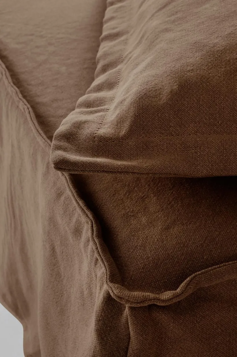 GARDANNE är en underbart generös och mysig fotpall med lös och ledig klädsel av 100% linne som tvättats för att få den perfekta, sköna looken. Tyget är slitstarkt med Martindale på 11000 och beläggning på baksidan som förhöjer slitstyrkan ytterligare. Hela klädseln är dessutom avtagbar. Sittdynan har en bred vinge runt om. Linneklädseln ger fotpallen ett naturligt och avslappnat uttryck och den får lyxig känsla tack vare den härliga fyllningen av 50% fjäder och 50% polyesterfiber. Stommen är FSC-certifierad och består av plywood och furu med zickzackfjädring för bekväm sittkomfort. På stommen ligger en mjuk och stor sittdyna som utöver fjäder- och polyesterfiberfyllning också har försetts med skumfyllning för att bli extra bekväm och mjuk. GARDANNE bjuder verkligen in till avslappning, sjunk ner i din fåtölj eller soffa, lägg upp fötterna på fotpallen och njut av lugnet.