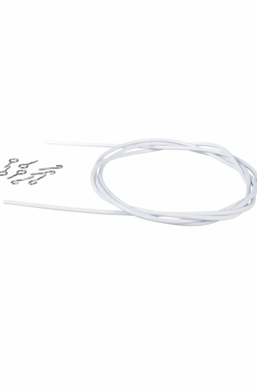 Spiral i stål och plast med öglor och krokar i järn. Innehåller 4 krokar och 4 öglor.