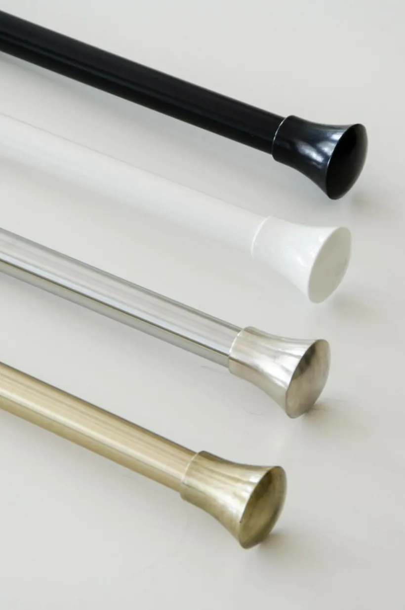 Stilrent, komplett gardinstångset i metall, 16/19 mm. Setet innehåller justerbara stänger 130-240 cm, 2 ändknoppar och 3 st fästen.