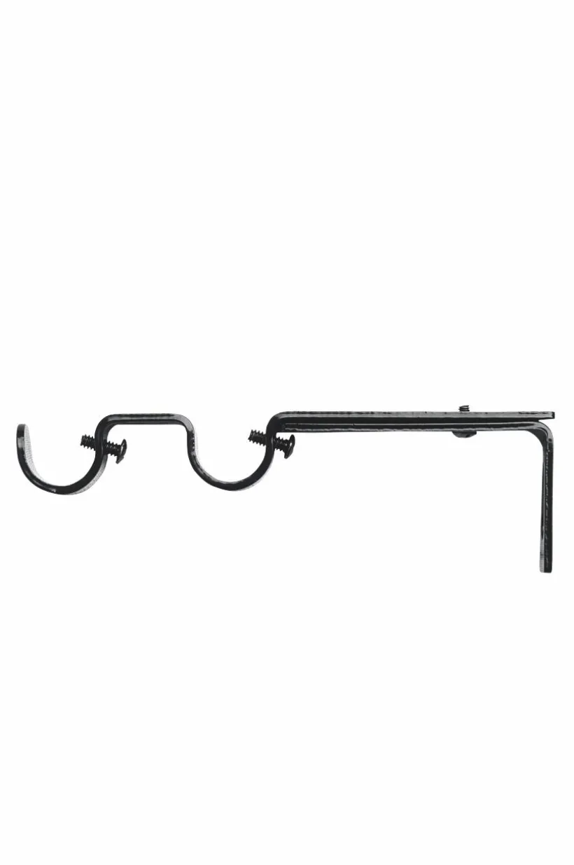 Kirsch reglerbara dubbla gardinstångshållare med plats för två gardinstänger. Passar alla gardinstänger med ø 19 mm. Reglerbart väggavstånd. Det är 10 cm till första och 15 cm till andra böjen där man placerar stången om man har hållaren i innersta läget. Om du drar ut den blir det 15 respektive 20 cm till böjen där man placerar stången.