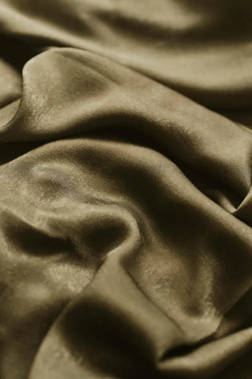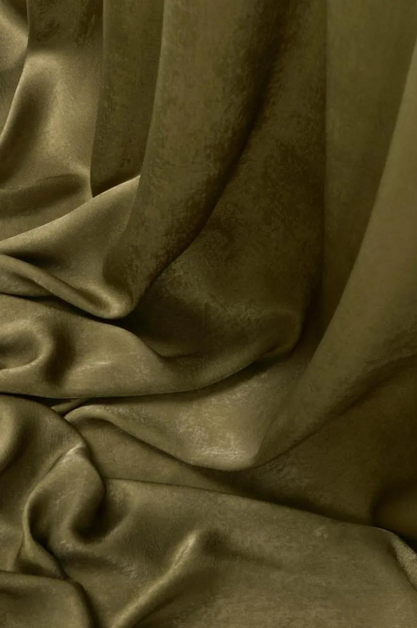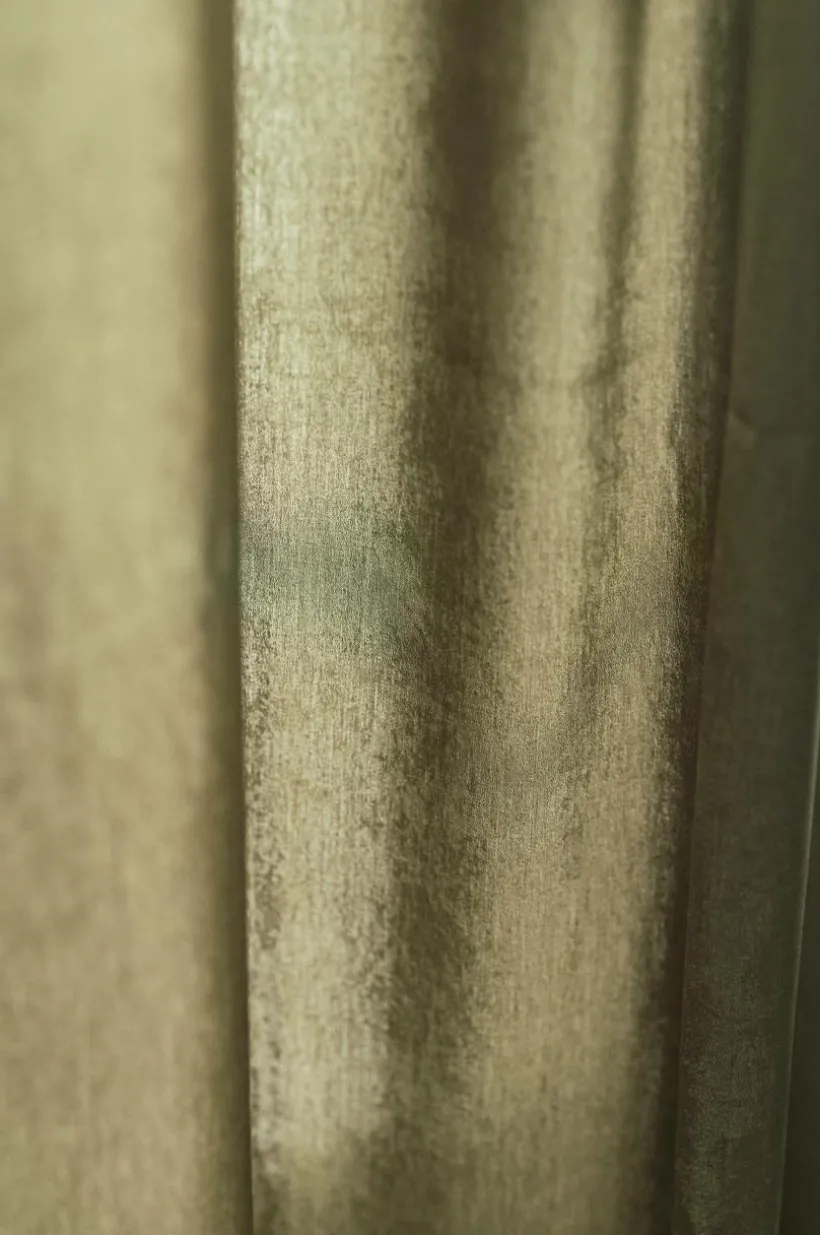 Två kanallängder av enfärgad polyester i en mjuk kvalité med fint fall och glänsande lyster. Sidorna har overlocksöm som förstärker längdernas följsamhet och fina fall. Varje längd har 5 cm kanal och 5 cm rynkhuvud.