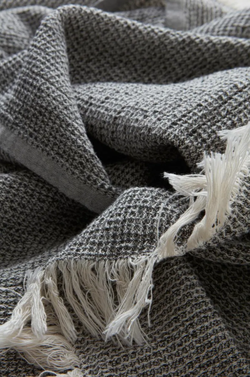 Pläd i skön kvalité av bomull med inblandning av lin, en behaglig mix på många sätt. Bomullen tillför mjukhet och linet tillför rustik stadga. Pläden GIA är speciellt vacker och dekorativ. Färgen är lätt melerad och pläden har fin frans längs kortsidorna. Vikt 300 g/m².