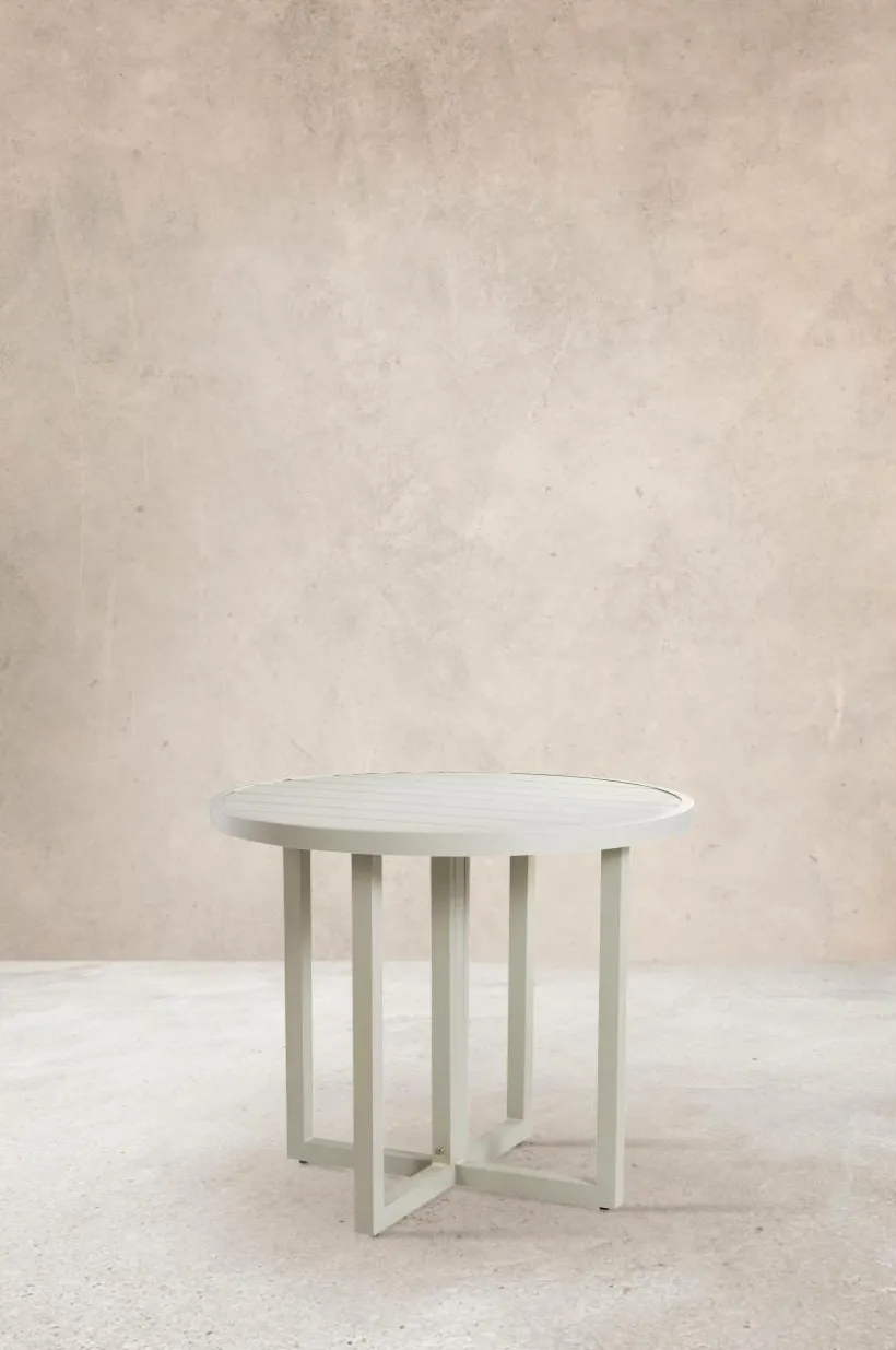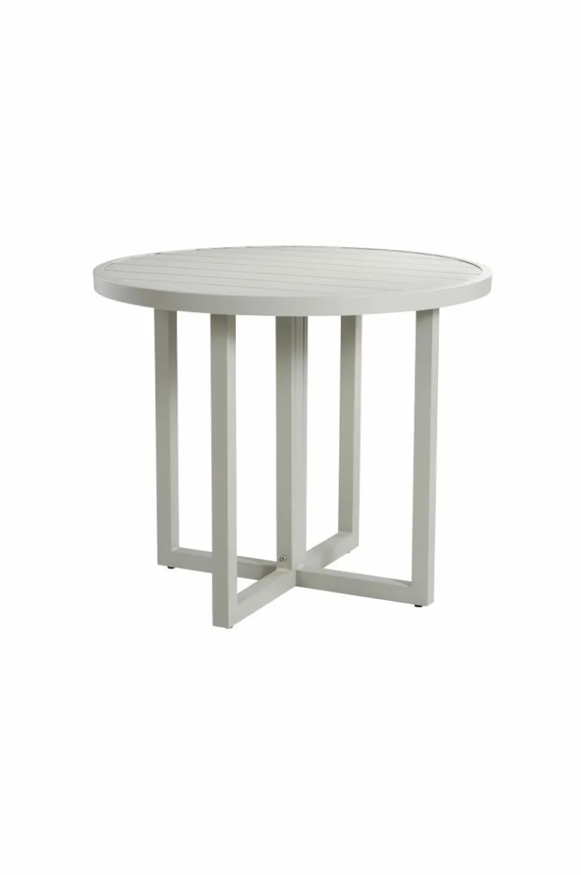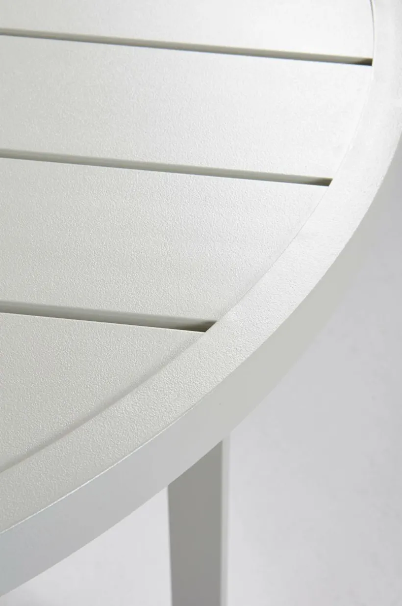 Matbord av aluminium med matt yta som inte bländar i solskenet. GIBRALTAR tål att stå utomhus, aluminium rostar inte. Aluminium gör också att bordet är lätt och smidigt. Du justerar enkelt stabiliteten på bordet med skruvknoppar. Viss montering krävs, benen monteras efter leverans. Monteringsanvisning medföljer.
