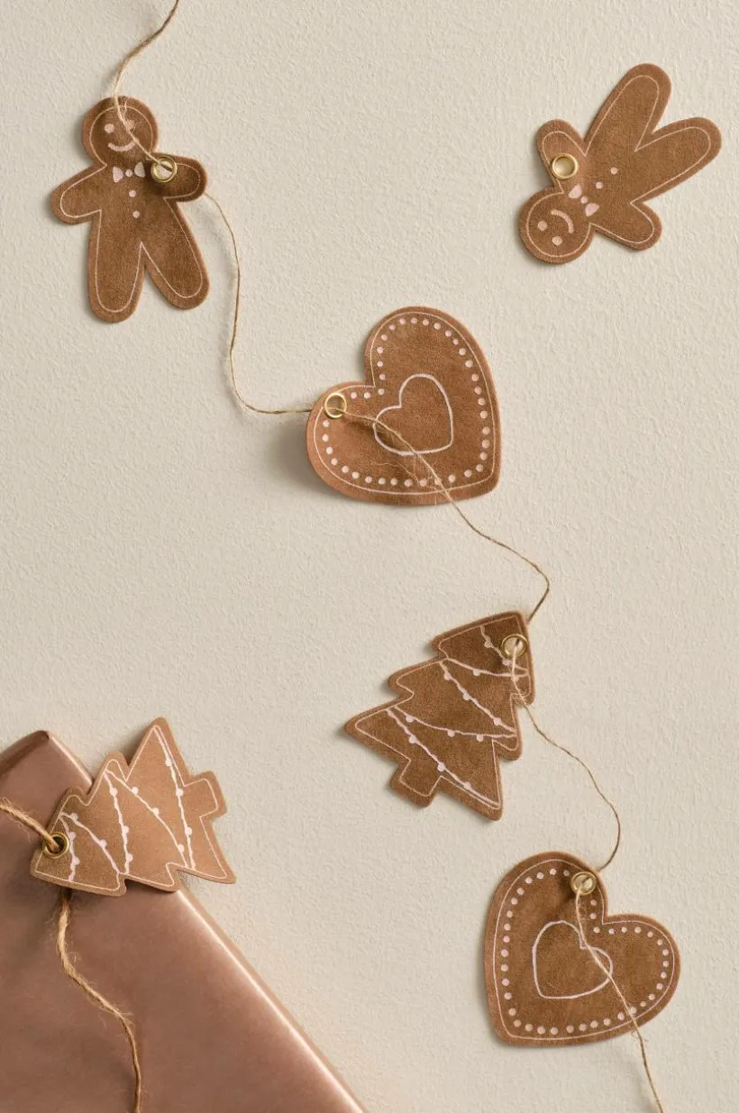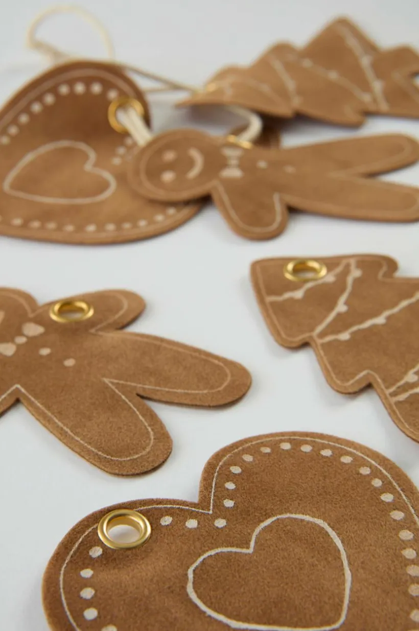 Festliga pepparkakshängare ger charm till dina julklappar. Med invecklade präglade mönster som liknar pepparkakor med glasyr, innehåller detta 6-pack två pepparkaksmän, två granar och två hjärtan. Perfekt för glädjefylld inslagning.
