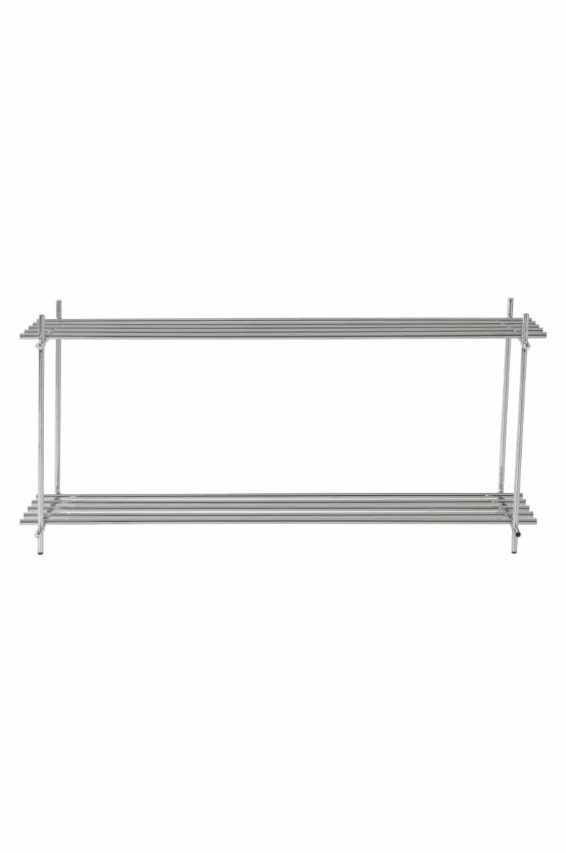 GLAZE är en minimalistisk hallserie för stilren förvaring vid din entré. Skohyllan är tillverkad av järnrör med kromad plätering som ger en högblank yta. Skohyllan har två hyllor för skor.