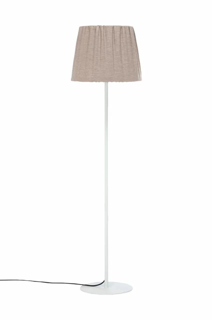 Agnar golvlampa för utomhusbruk. Lampskärmen är tillverkadi ett tyg av 100% akryl dralon som tål att vistas utomhus i alla väder. Vatten- och smutsavvisande teflonbehandling. Lampskärmens ställning är galvaniserad för att inte rosta. Foten har en E27 lamphållare för ljuskälla. Över ljuskällan och lamphållaren sitter ett vitt plastlock samt en packning som skyddar mot väta. Lampskärmen sätts fast i lampfoten med hjälp av ett specialfäste. Lampfot och lampskärm säljs endast som ett set om fot och skärm.