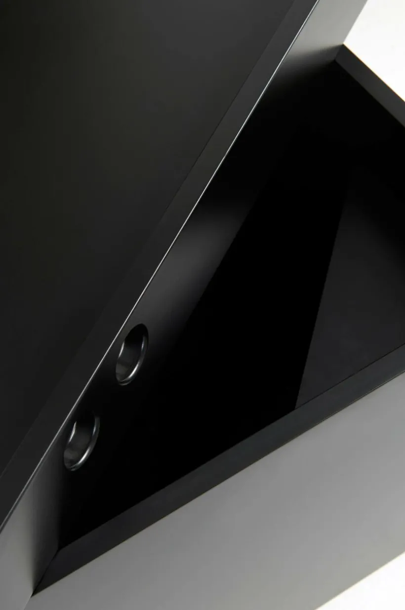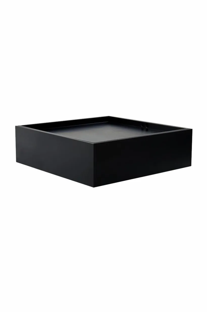 Kvadratiskt soffbord i MDF. Soffbordets bordsskiva är utformad som en stor bricka som sänks ned i soffbordet och undertill får du en praktisk förvaring. Bordsskivan har två runda, dekorativa hål som har handtag på två sidor. Det låga bordet ger en mysig stämning till din soffhörna samtidigt som du utnyttjar utrymmet till förvaring.