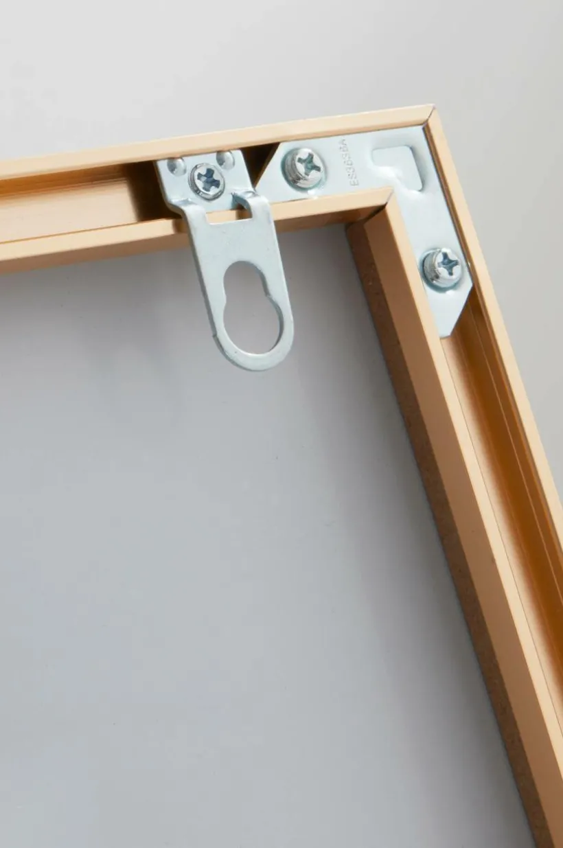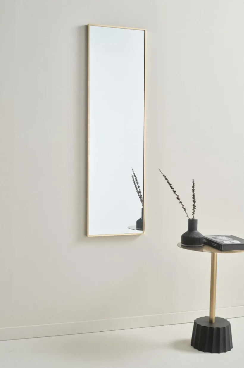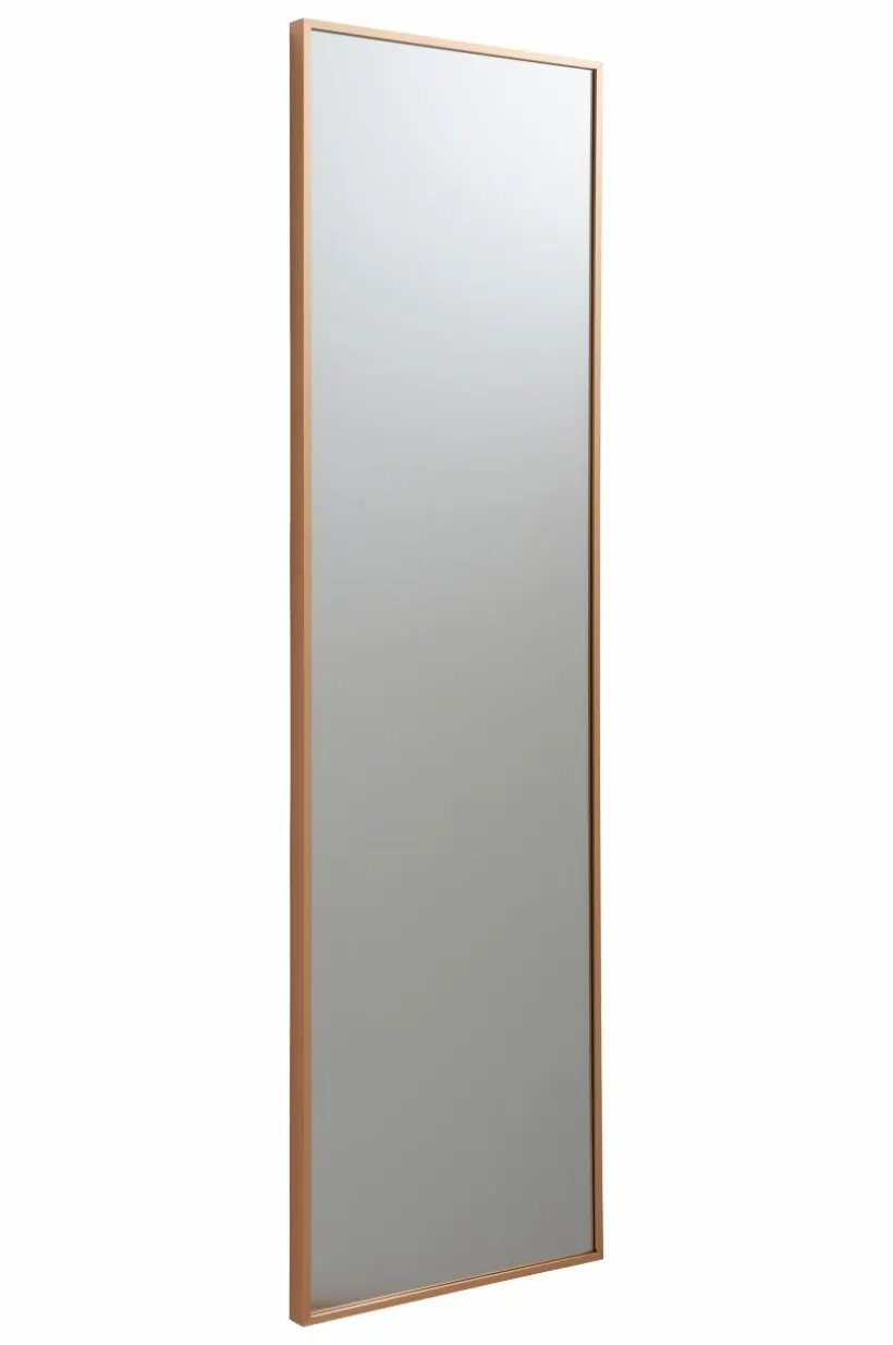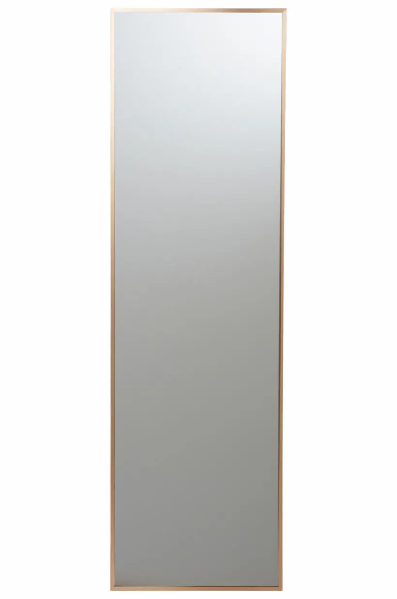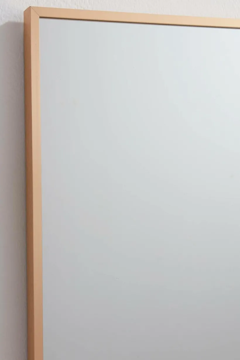 Rektangulär spegel med smäcker aluminiumram. Ramen har dold förstärkning av MDF. Tre dolda hängare på baksidan, så spegeln kan hängas både vågrät och lodrät.