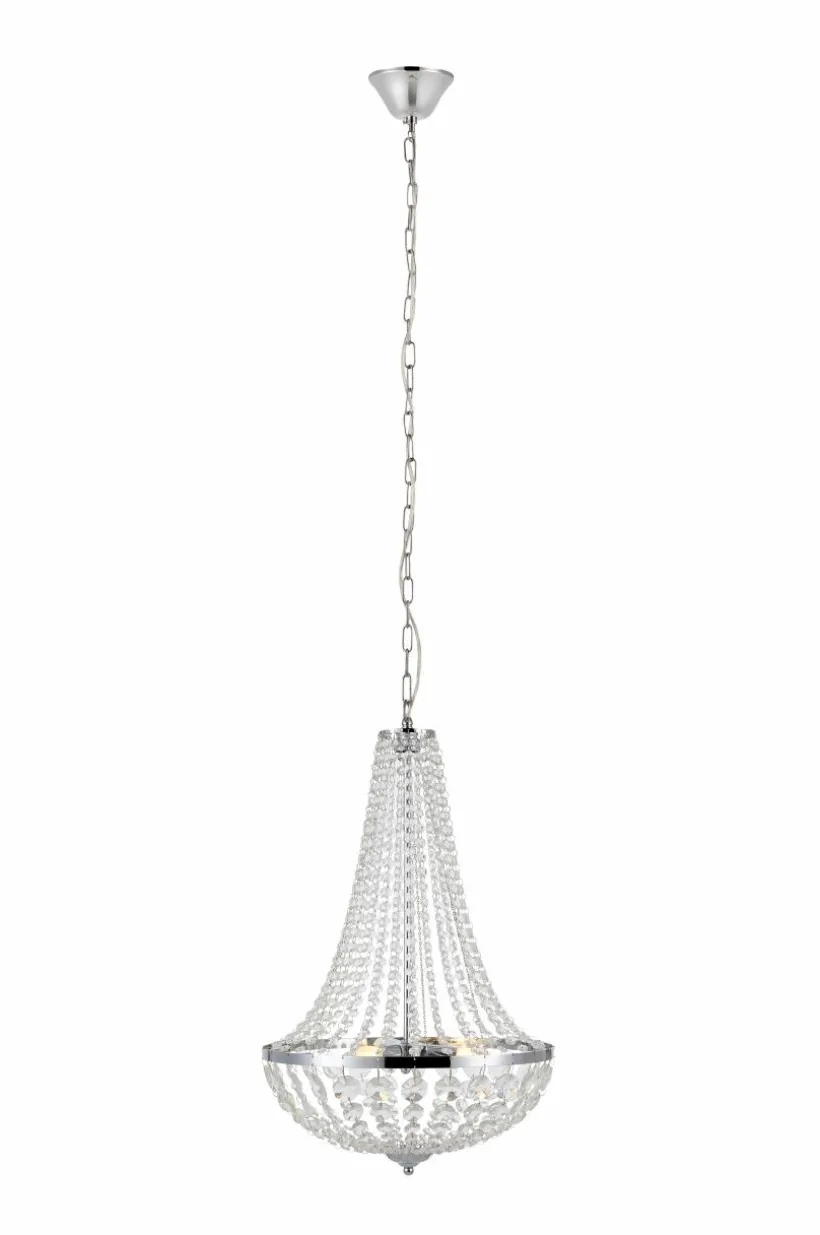 Klassiskt formgiven kristallkrona med maskinslipade, klara glasprismor som ger en fin spridning och lyxkänsla över matbordet! Godkänd för badrum. Takplugg ingår ej p.g.a. nya EU-regler. Den finns att köpa separat.