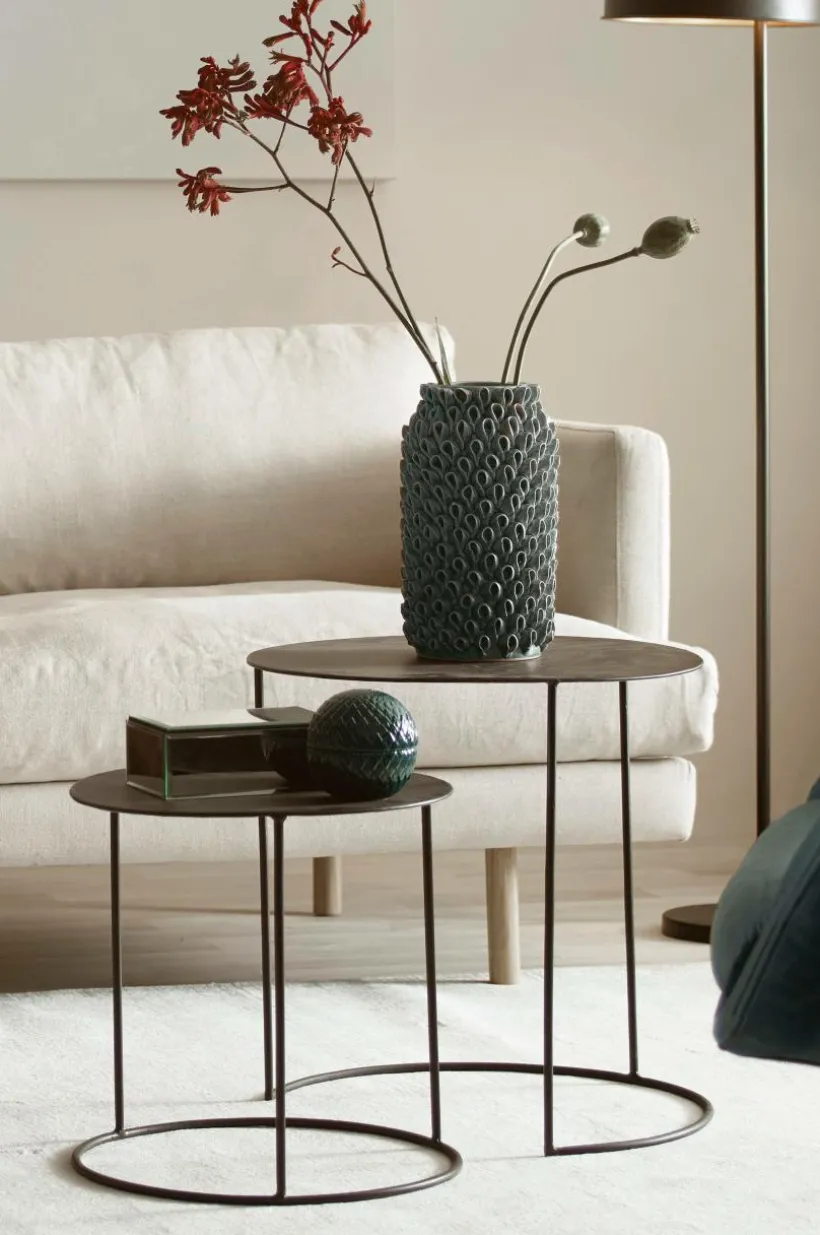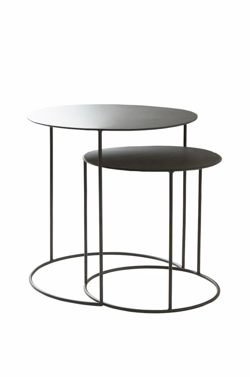 Beskrivning: 2-pack runda soffbord i pulverlackerad metall.