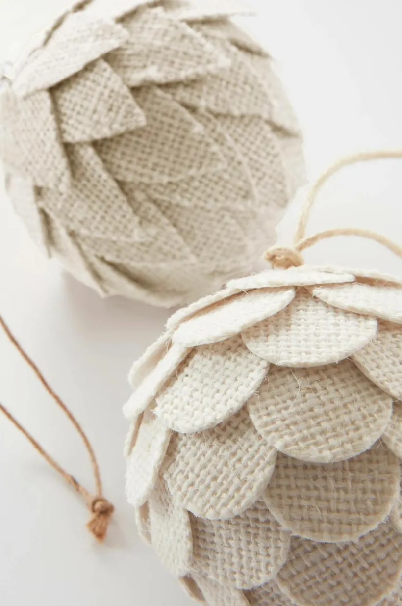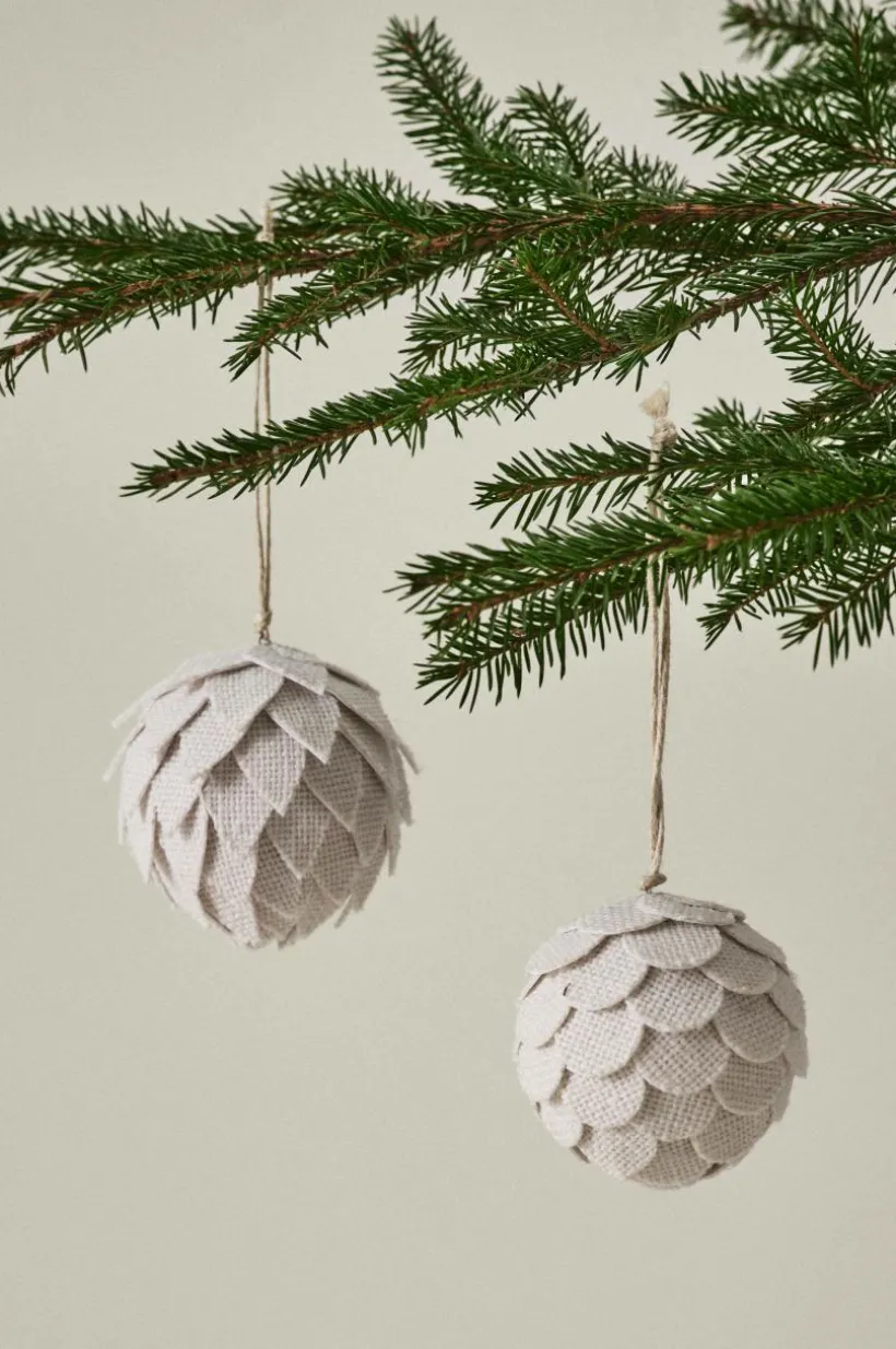 2-pack hängande dekorationer som är handgjorda och tillverkade av papier maché. De påminner om kottar med rutmönster ton i ton och de har ett snöre för upphängning. Dekorationerna kommer i en pappersask.