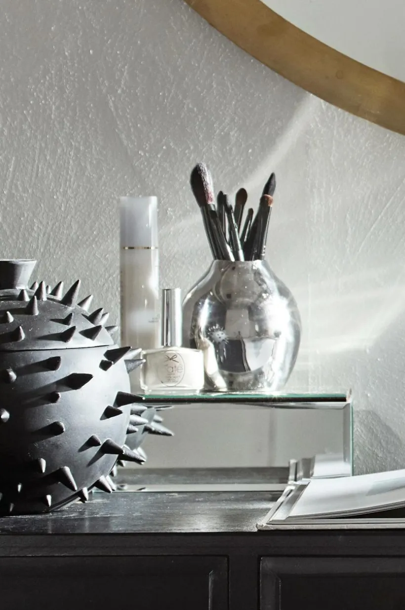 Vas av pläterad metall. Glödande nyanser som tillför värme i inredningen.