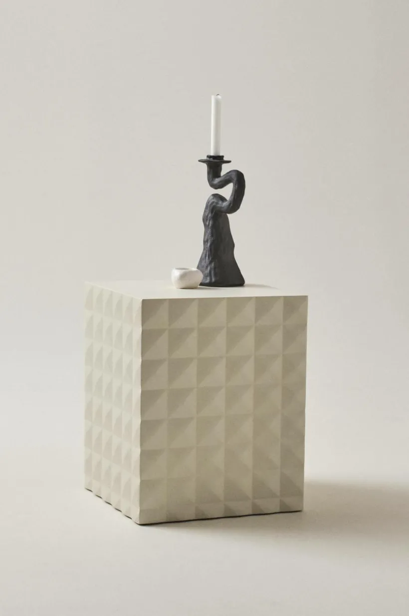 Kvadratiskt sidobord av FSC-märkt MDF som lackerats med matt färg. Bordsskivan är slät medan sidorna har effektfullt geometriskt mönster med läcker 3D-effekt.