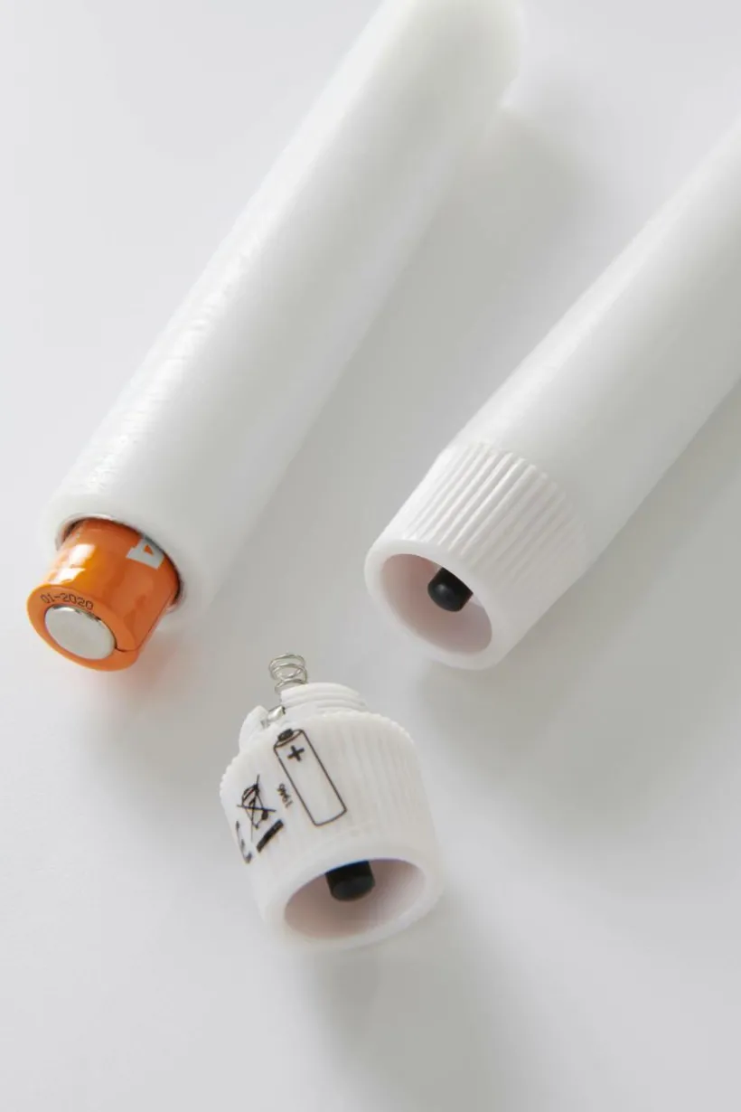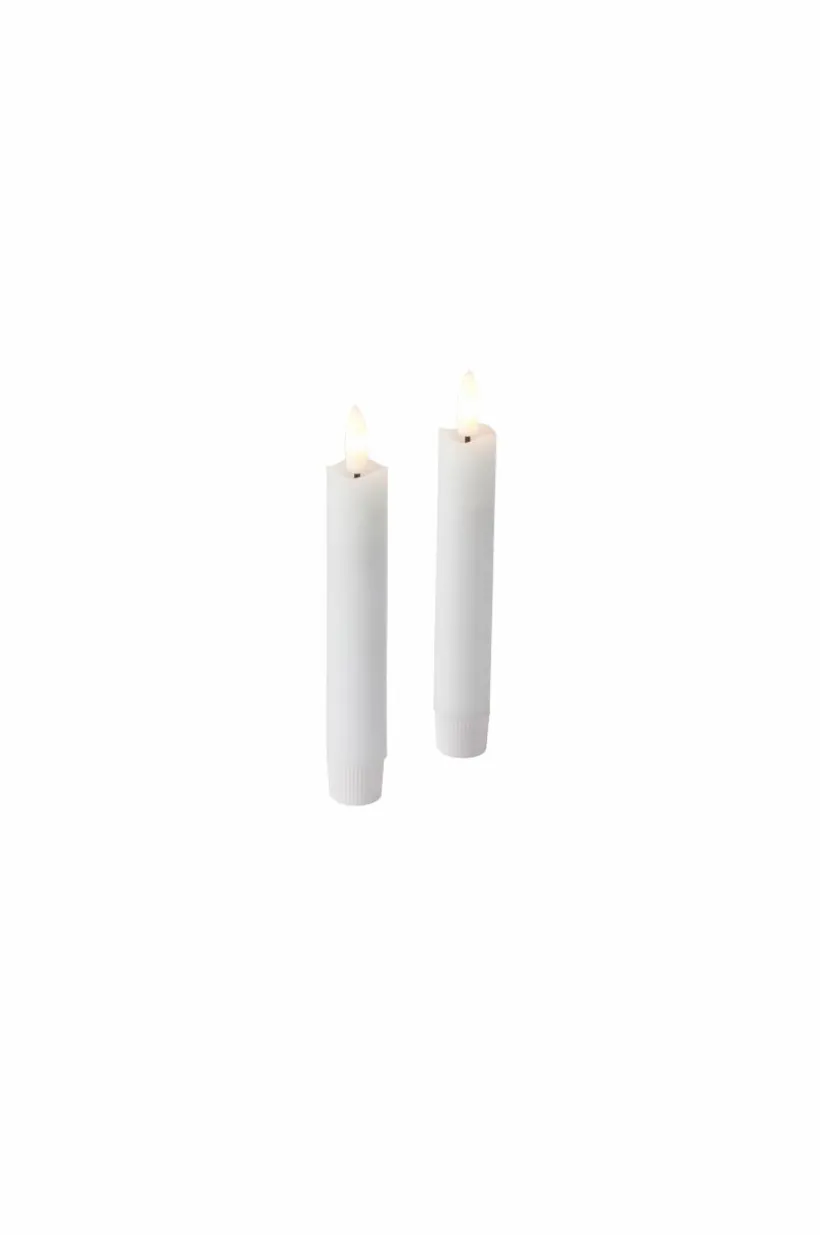2-pack LED-antikljus i vax med inbyggd repeterande timer som är på i 6 timmar och av i 18 timmar. Ljusen är halvlånga vilket ger en känsla av att de har brunnit ner en bit. Drivs med 2 st AA-batterier. Batterier ingår ej.