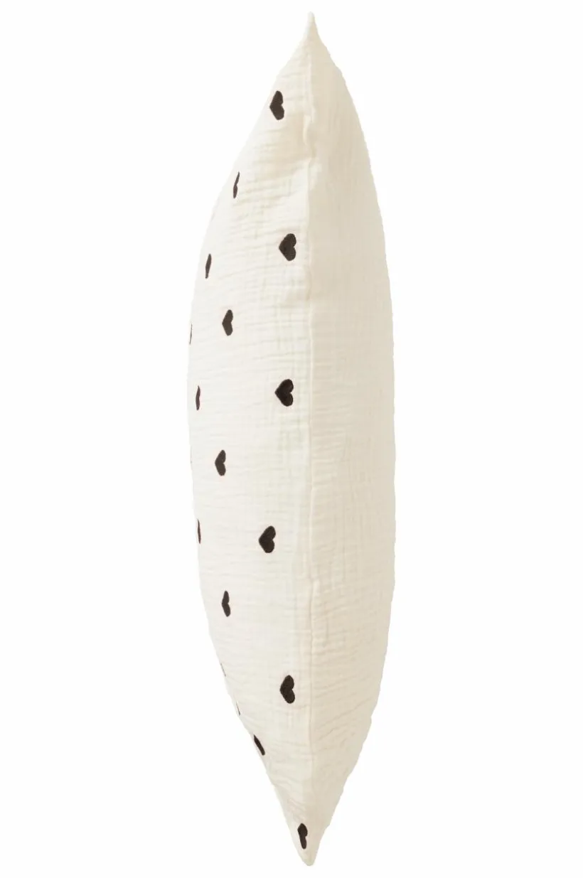 1-pack örngott i härlig, ekologisk bomullsmuslin med broderade hjärtan. Muslin är ett mjukt, tunt tyg i två lager, vävt med lite bubblig effekt, vilket gör tyget mjukt och extra lättskött. Du behöver inte stryka eller mangla. Det behagliga muslintyget är skönt att sova i. Detta lilla örngottet skyddar underlakanet och är enkelt att byta ofta i till exempel spjälsängen, så du kan tvätta det ofta. Baksidan är enfärgad. Trådtäthet på 178 tc. (Trådtätheten talar om antalet trådar, thread counts, per kvadrattum i ett tyg. Ju högre trådtäthet desto högre kvalité.)