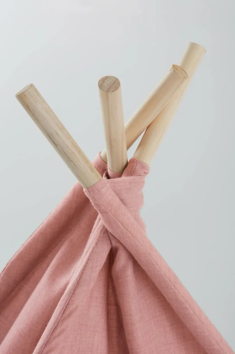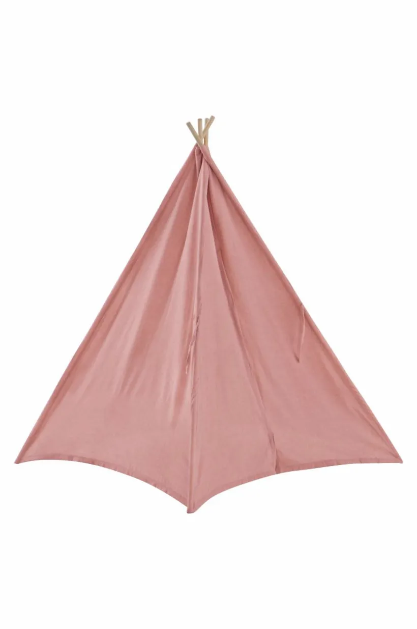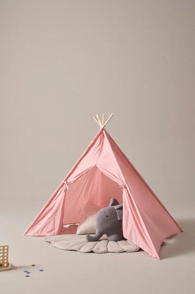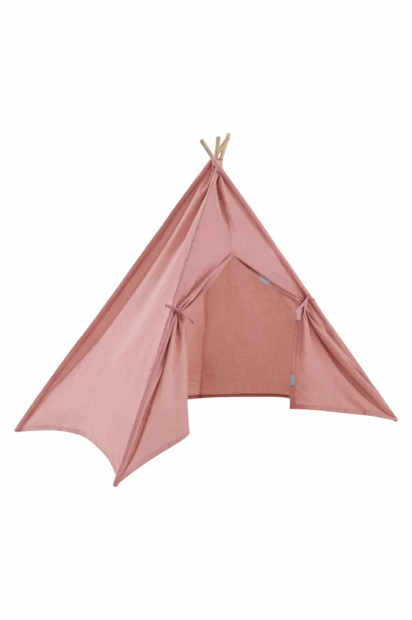 Barntält eller lektält med fyra sidor och fyra tältpinnar. Öppning med knytband framtill. Tältduken är tillverkad av polyester och har en mjuk sammetskänsla. Tältet passar utmärkt för lek eller mysiga sagostunder och blir en fin inredningsdetalj i barnrummet.