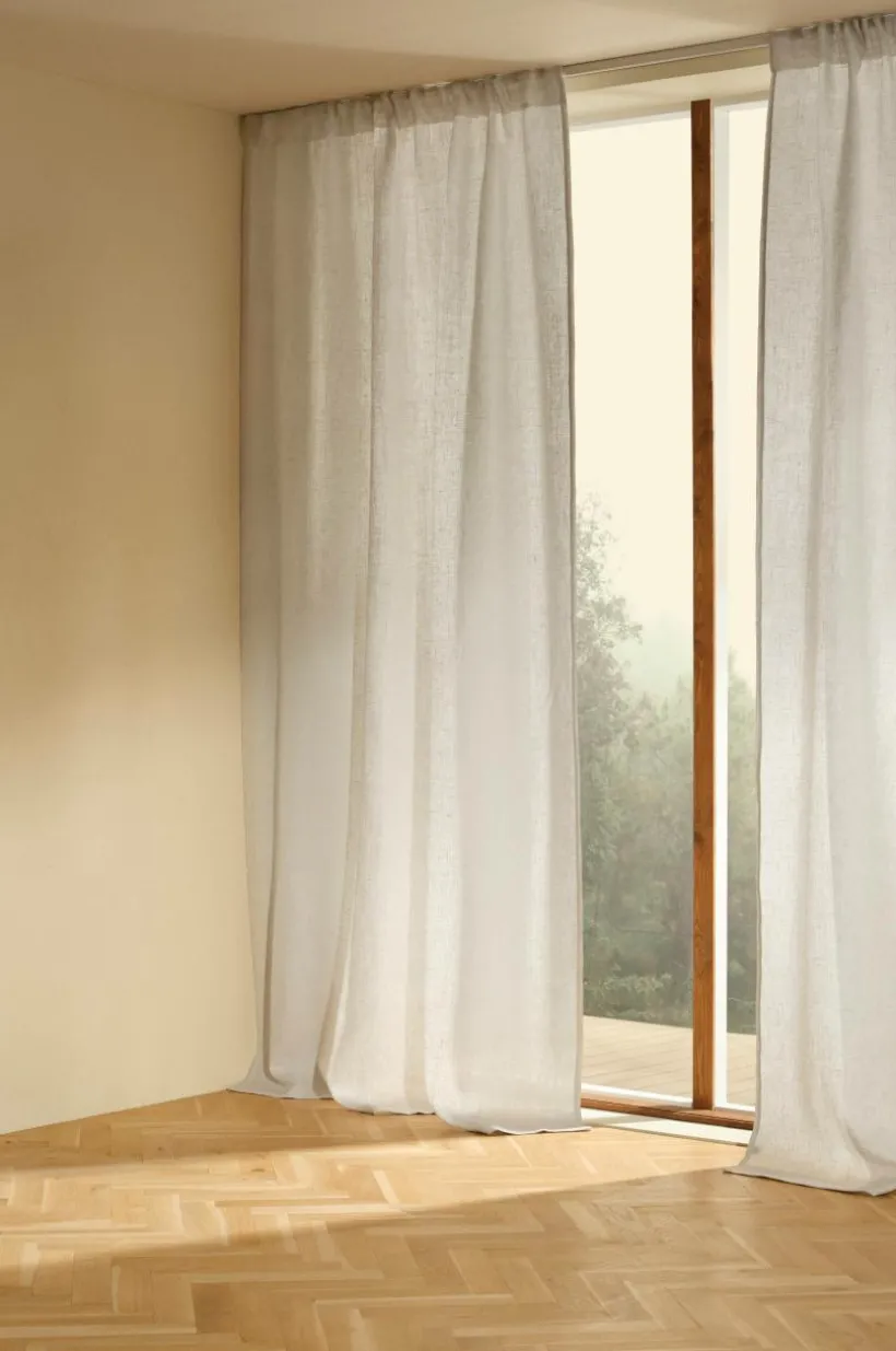 Två enfärgade gardinlängder i härligt linne med fin struktur som ger en exklusiv känsla. Med påsytt multifunktionsband. Gardinen kan hängas upp med fingerkrokar, kanal samt dold hälla.