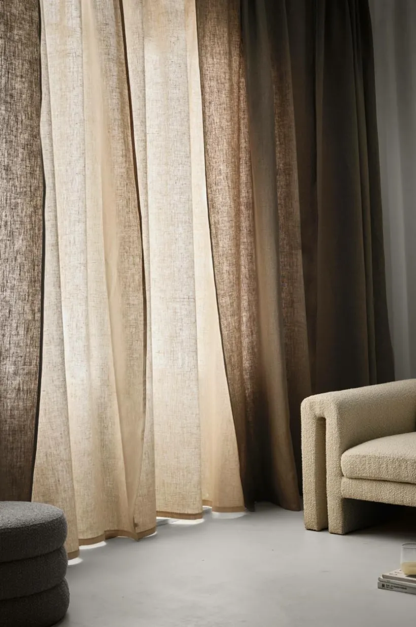Lin är ett fint naturmaterial som blir mjukare och mer följsamt med tiden. Ett tips för att få extra mjukt och fint fall är att använda en steamer när du hängt upp linnegardinerna på plats. Steamern kombinerar värme med ånga och gör gardinerna mer följsamma.