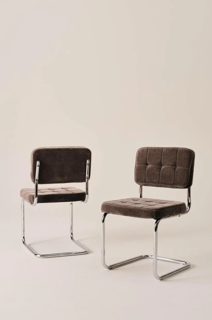 HEDEN stolsset erbjuder modern sofistikering i kombination med komfort. Varje stol är tillverkad i chenilletyg med 50% återvunnen polyester och har en vadderad sits med snygga knappar som ger en elegant touch till varje rum. Designen passar sömlöst in i modern heminredning, vilket gör den till ett perfekt val för dem som uppskattar både stil och komfort i sitt hem.
