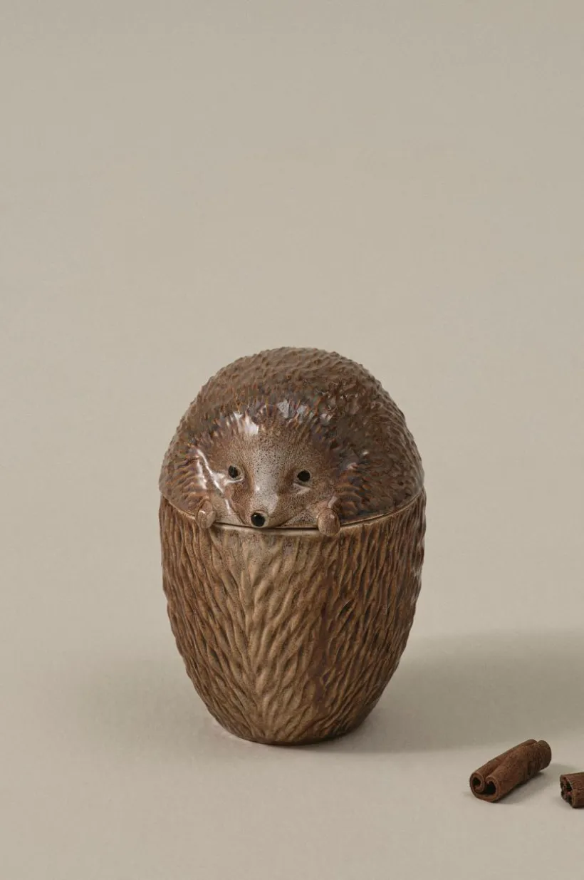 Handgjord dekorationsskål med lock, en fin prydnad som föreställer en söt igelkott. HEDVIG är av stengods med glansig glasyr. Det fina hantverket gör varje dekorationsskål unik.