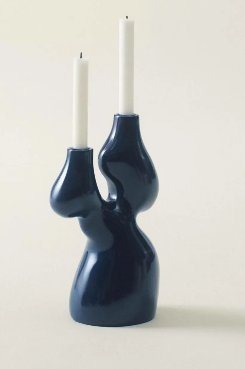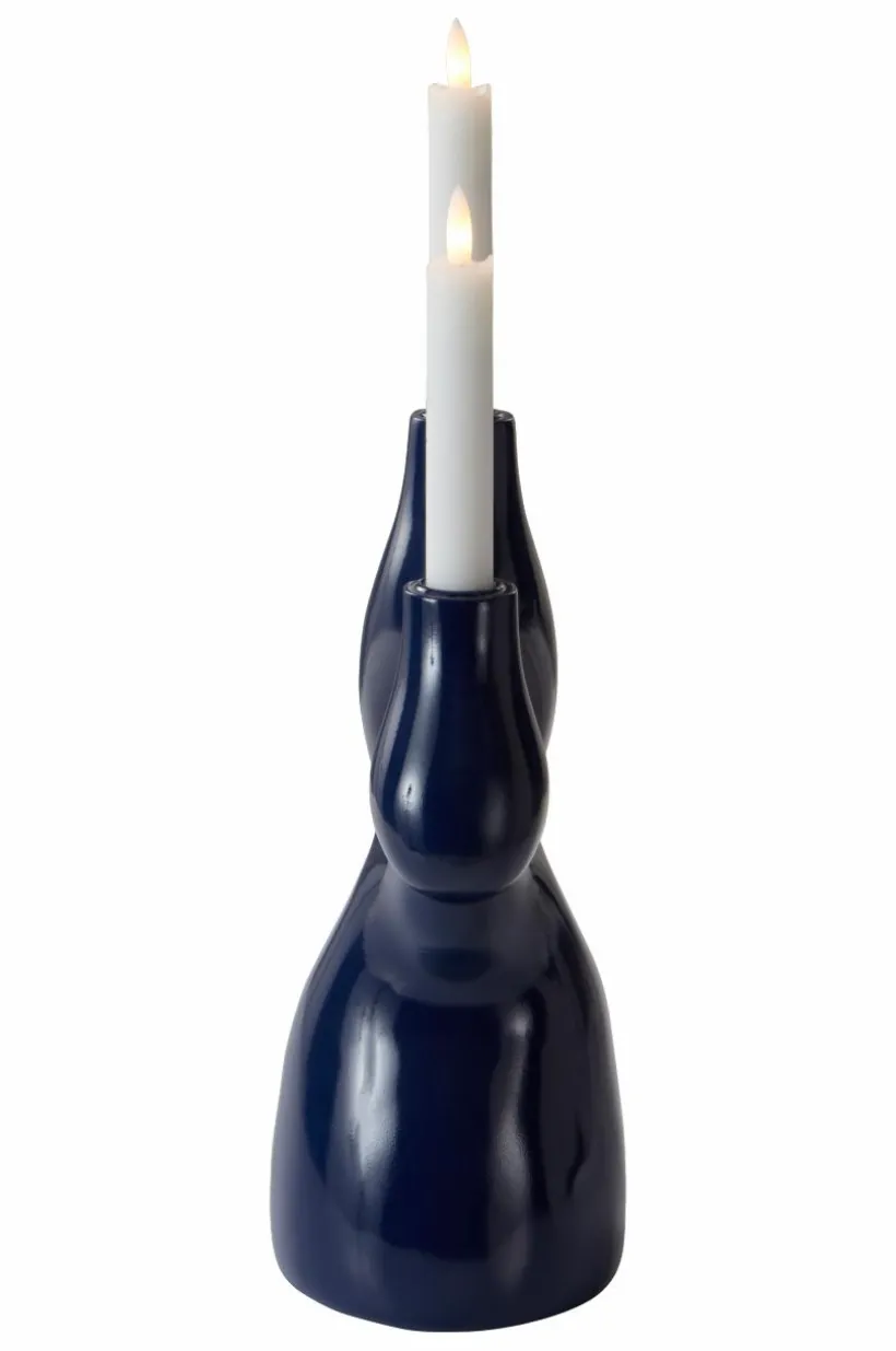 Handgjord ljusstake av polyresin. Ljusstaken är mjuk och böljande i formen och har två ljushållare. Det fina hantverket gör varje ljusstake unik. Ljus medföljer ej.